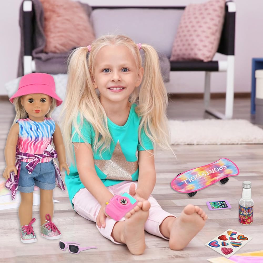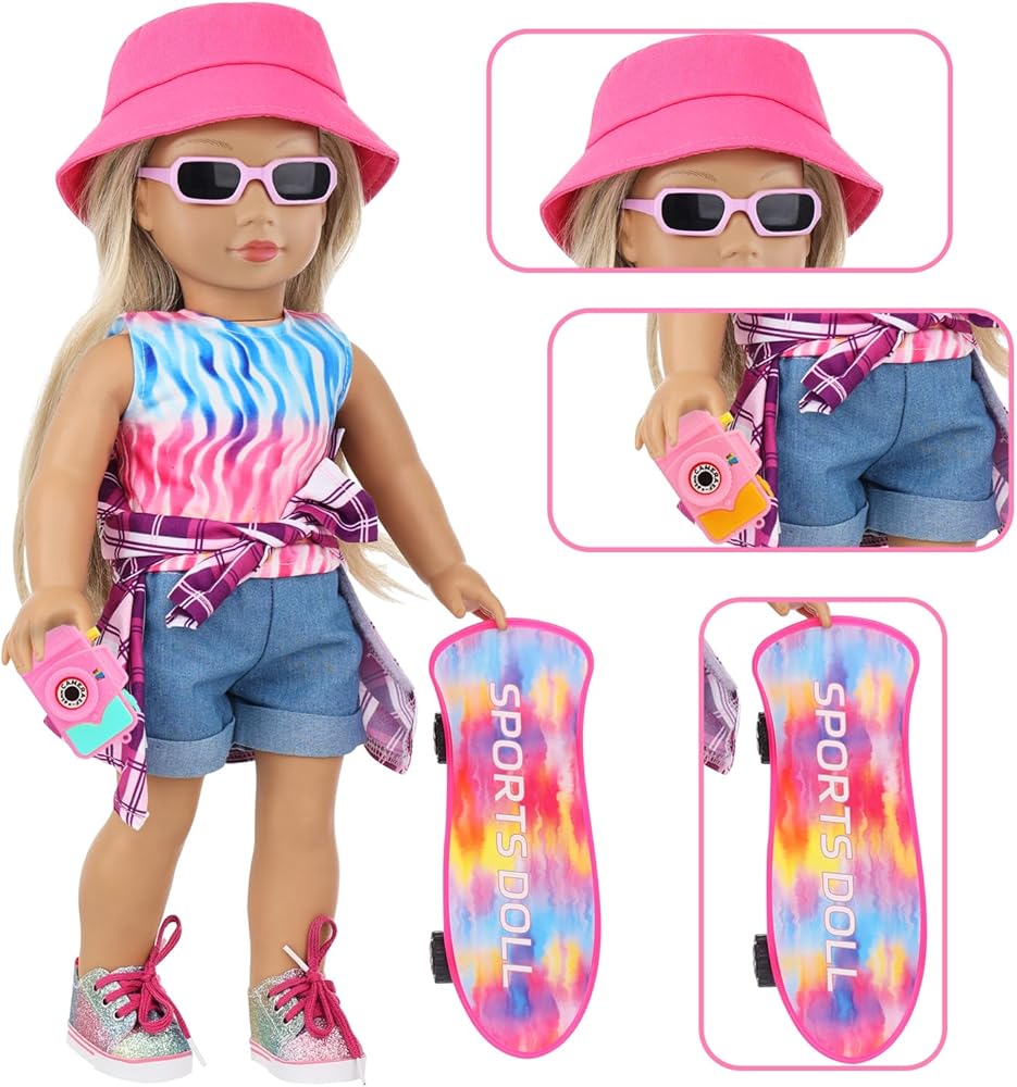 Quality Doll Clothes And Accessories : The fashion outfits, Skateboard, sunglasses and other accessories can perfect fit 18 inch girl doll and the other 18 inch girl dolls.