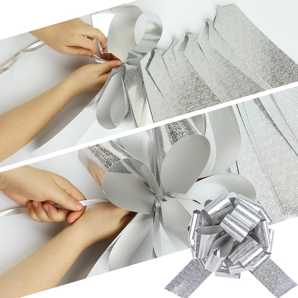 🛍️ Quick & Easy to Assemble – Simply pull the hidden ribbon strings to expand the bow, secure with a knot, and attach to gifts in seconds.