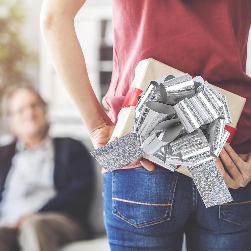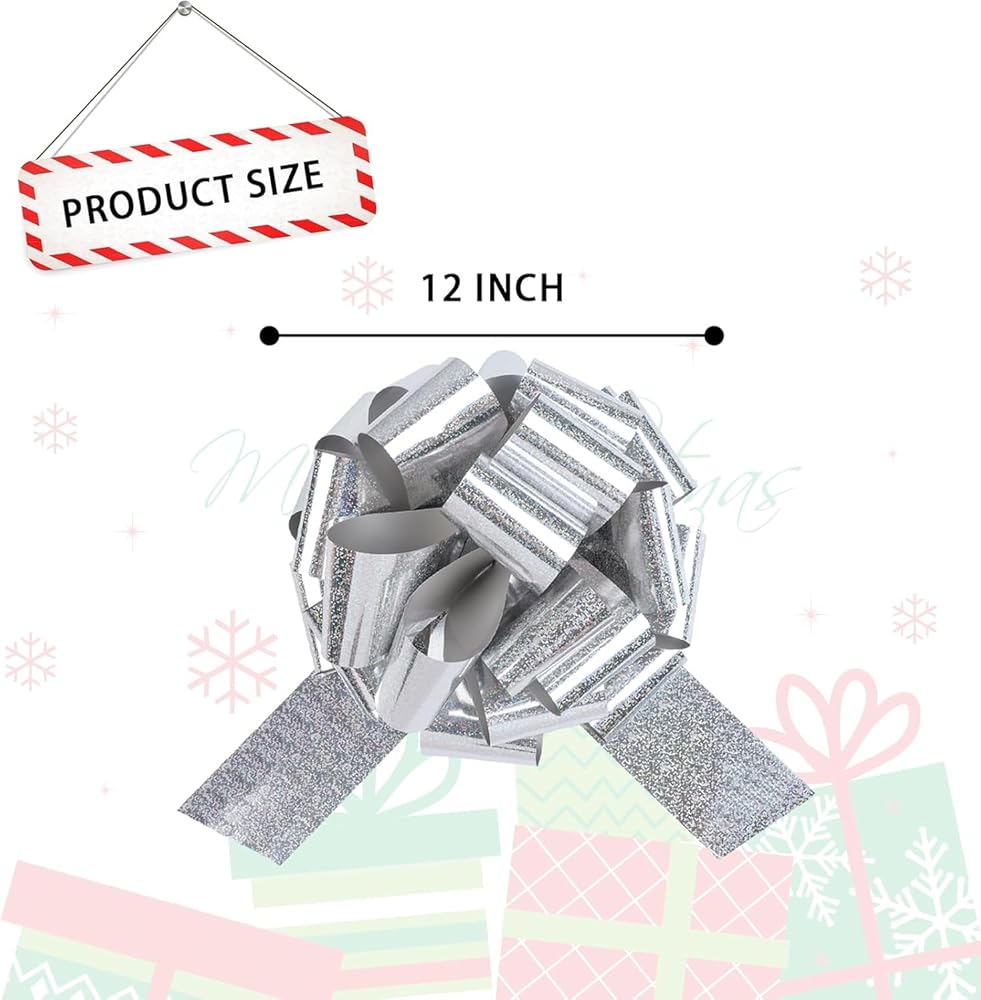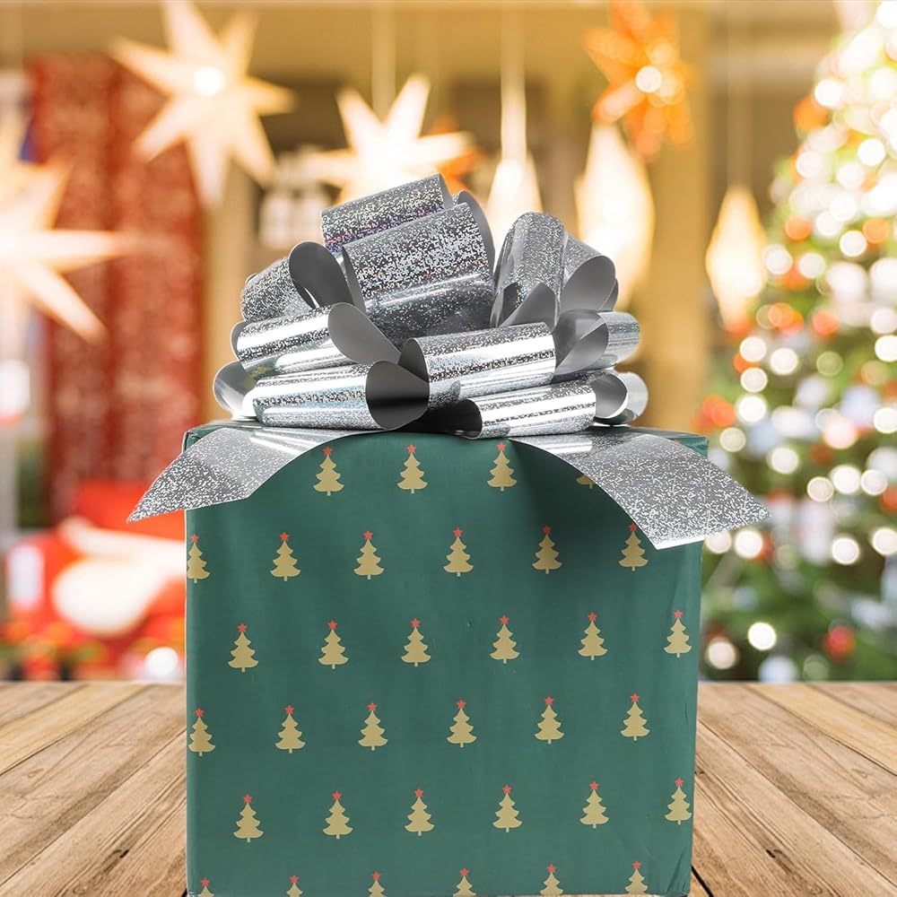 Make Every Gift Unforgettable Upgrade your gift-giving game with our 12-inch Glitter Pull Bow – the ultimate finishing touch for any special occasion! Crafted with a high-density glitter finish, this oversized bow catches the light from every angle, adding a luxurious sparkle to presents, wreaths, or party backdrops. Unlike flimsy paper bows, our reinforced PVC plastic base ensures the bow stays perky and vibrant throughout your event. Why Choose Our Glitter Bow? ✅ Time-Saving Convenience – Pre-shaped design unfolds in seconds, no messy glue or tape required. ✅ Kid & Pet-Safe Material – Non-toxic, smooth edges, and no loose glitter shedding (perfect for family-friendly events). ✅ Space-Saving Storage – Flatten after use and reuse year after year – a budget-friendly decor solution!
