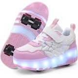 Shoes with 16 LED light modes,7colors,there are also 3 led lights on the wings!Can charge with USB Charge Cable. Usually charge 2-4 hour can flash 1-5 days!