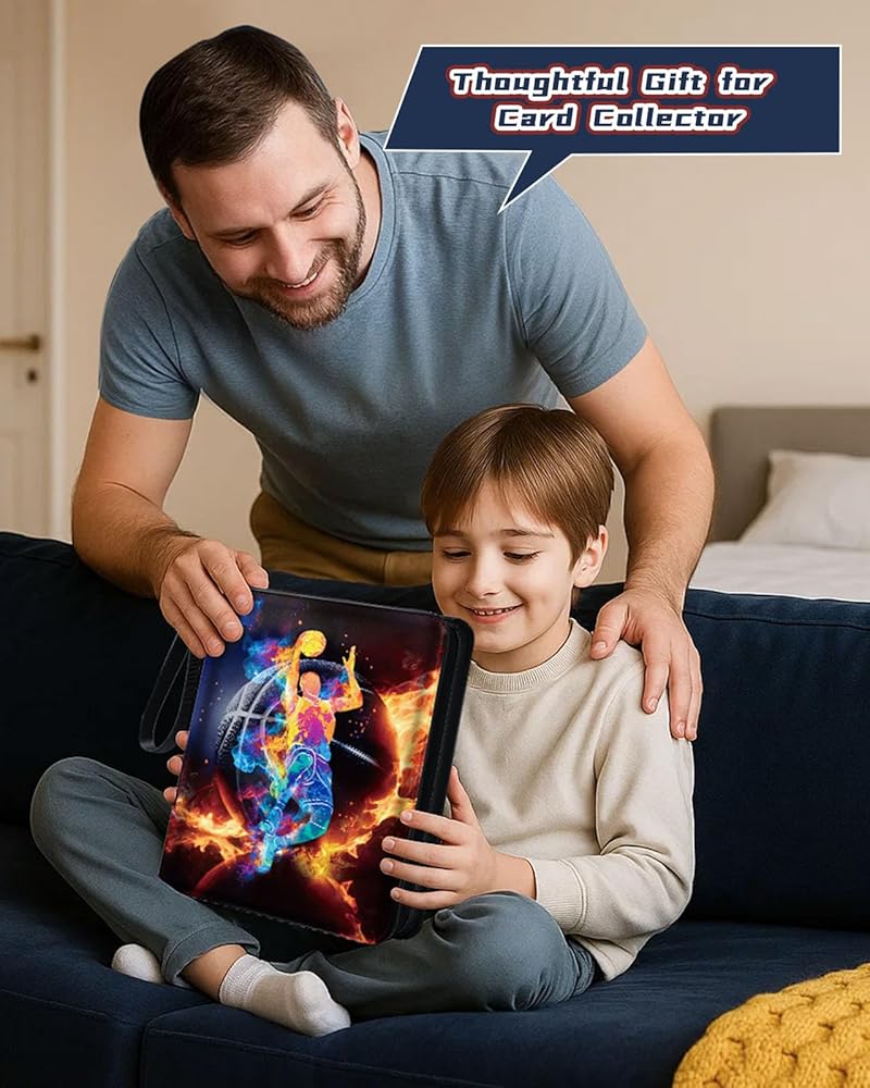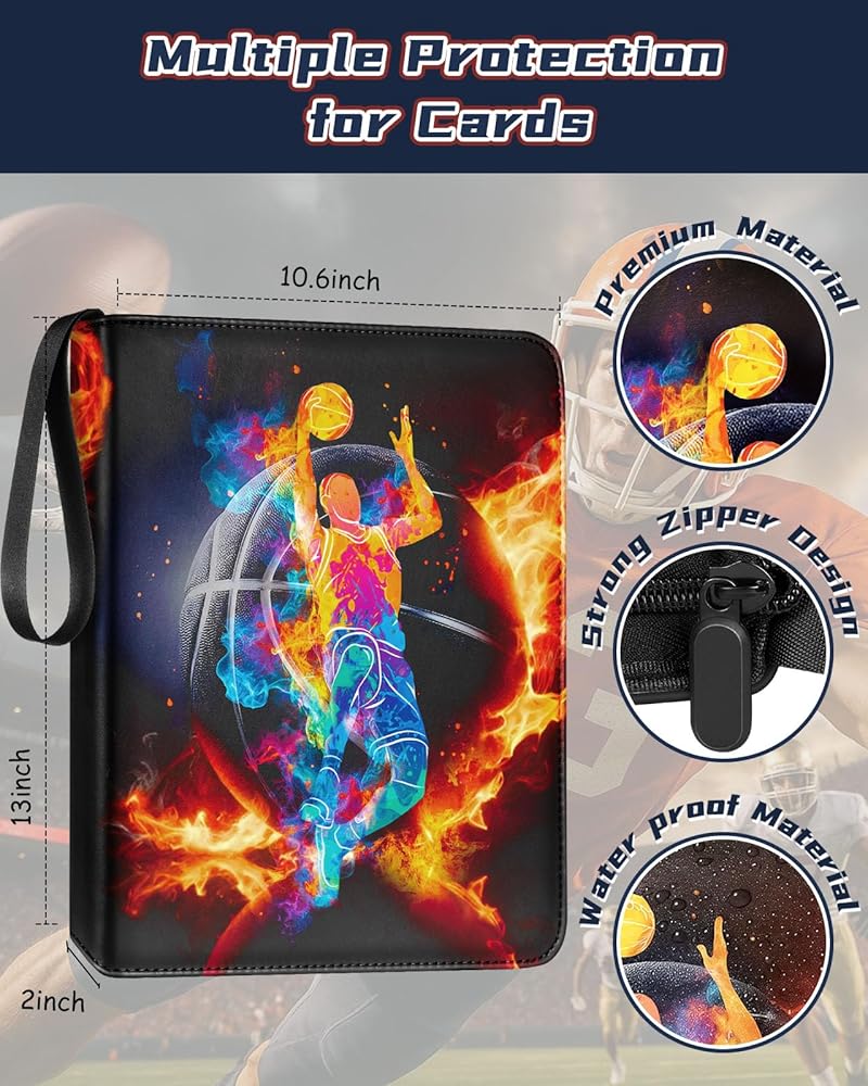 for 9 Pocket Trading Card Binder for 900 Cards - Large Capacity Card Collection Album Folder Double Sided Pocket with Zipper Basketball Design for Men Boys Teens for Sports Cards Game Cards
