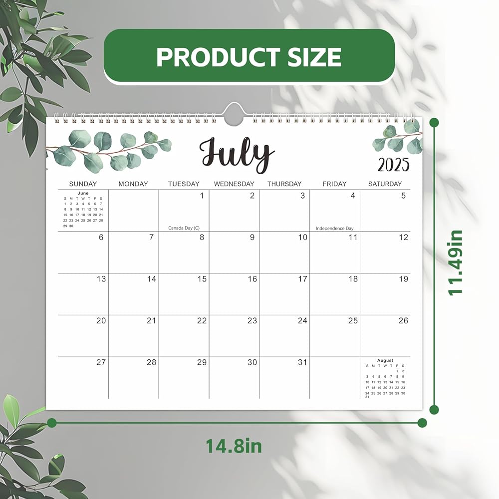 【Stay Organized】Keep on top of every important moment with our 2025 vertical wall calendar! Covering every month from July 2025 to December 2026, it allows you to clearly view all appointments, deadlines, birthdays, US holidays, and other key dates. 【Ample Recording Space】This 2025 vertical wall calendar is designed with practicality and details in mind, ensuring that you can manage your daily schedule efficiently. The calendar's large day blocks are 1.6" x 2", providing you with ample recording space for you to record all important matters, meetings, tasks, and activities in detail. 【Exquisite Modern Design】This wall calendar is not only a practical premium planning tool, but also adopts a modern green aesthetic design, it adds a relaxing and pleasant atmosphere to your office, home or classroom. The green theme of each page not only makes you feel comfortable when planning, but also enhances the overall visual effect. 【More Efficient】 Whether it is used to manage personal schedules or assist with family and work arrangements, this wall calendar can provide you with great convenience. It is not only a practical time management tool, but also beautiful and decorative, and can become a beautiful scenery in your office space or home environment. You can face the challenges of each day more calmly and effectively improve your time management ability and work efficiency. 【Premium Material & Tear-Off Design】 This 2025 calendar is made of extra-thick premium paper, which effectively prevents ink penetration, ensuring that your records remain clear. In addition, each page adopts a tear-off design, making it more convenient to view the information of the current month. This design allows you to clear outdated information after completing your plans for a certain month, keeping your workspace organized.
