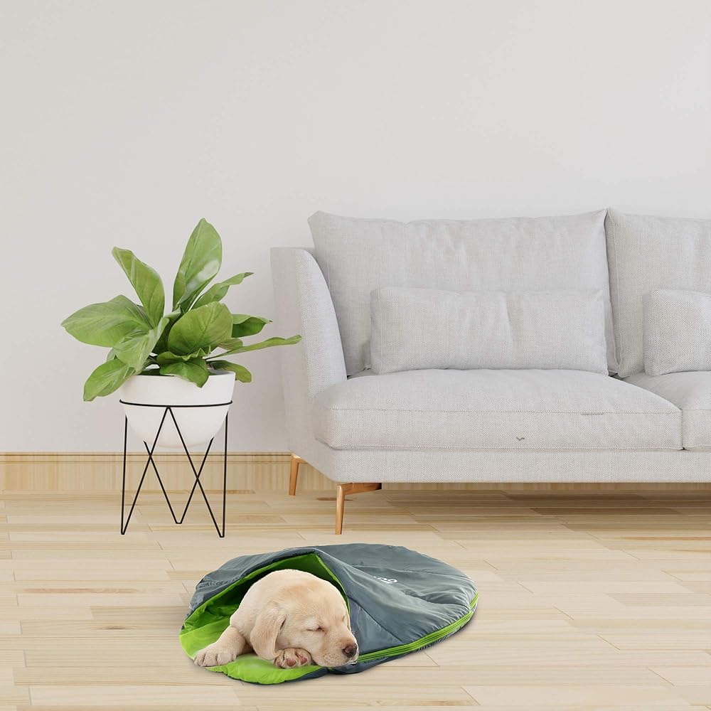 THE IDEAL SIZE: Great for dogs of all sizes, the pet sleeping bag measures 36" in length and 26" in width. Great for on the go, the packable dog bed condenses down to just 15" in height and 5.5" in width so you can take it with you anywhere.