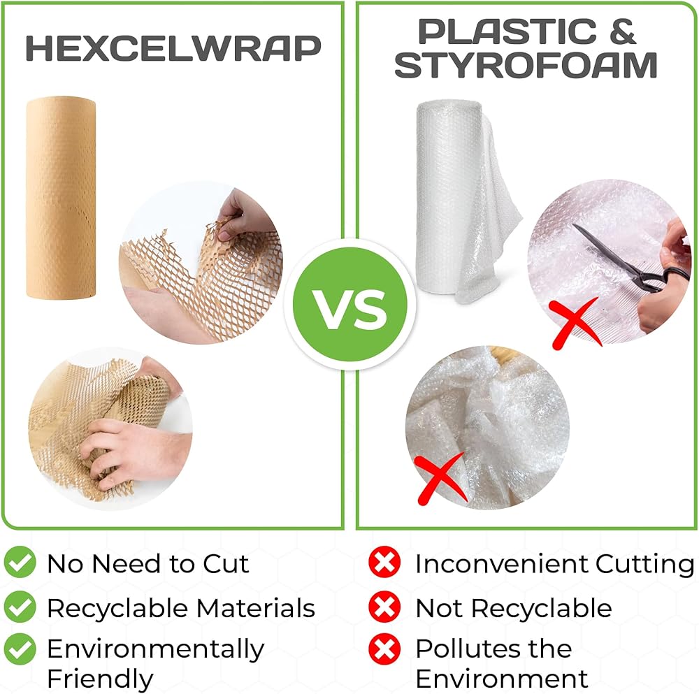 HexcelPack HexcelWrap Mini - Honeycomb Packing Paper, Eco-Friendly, Sustainable Paper Bubble Wrap for Shipping & Moving, Cushioned Packing Material in Easy Self-Dispenser Box - Natural, 12" x 300'