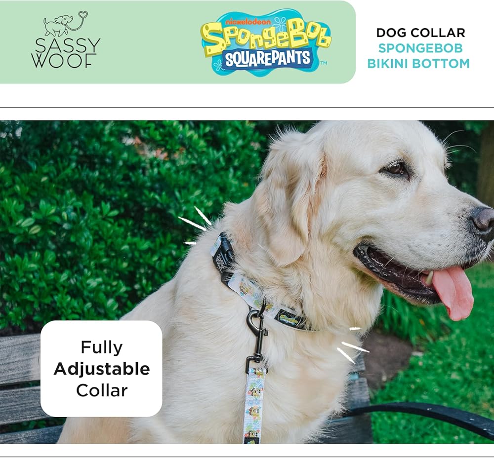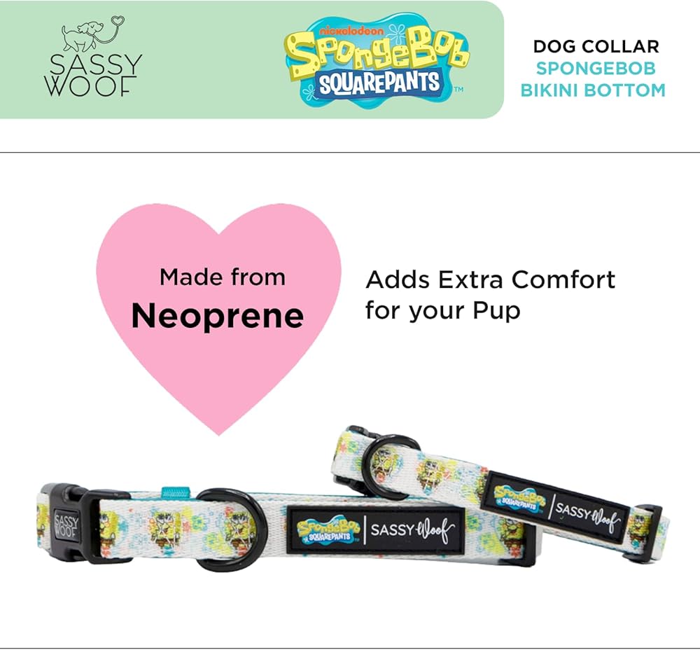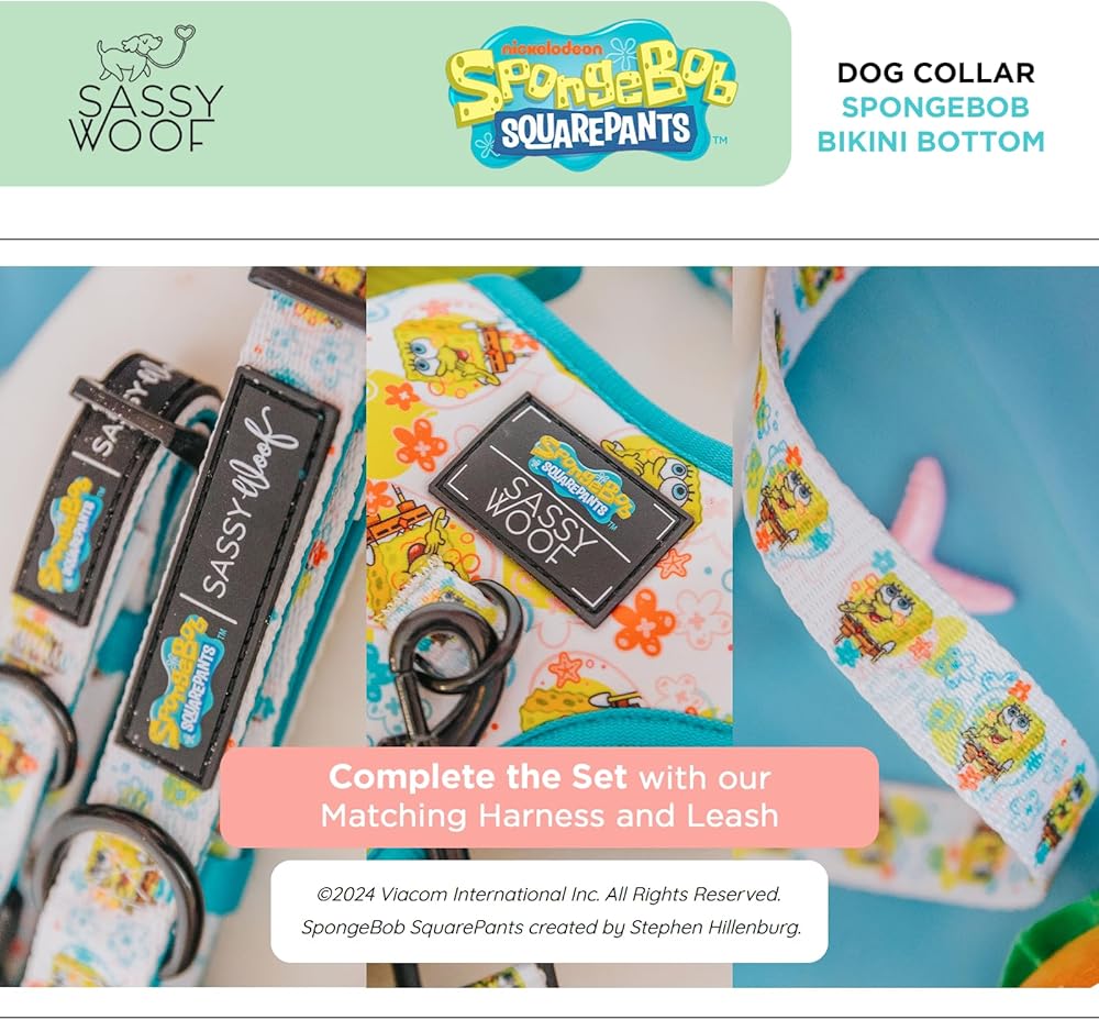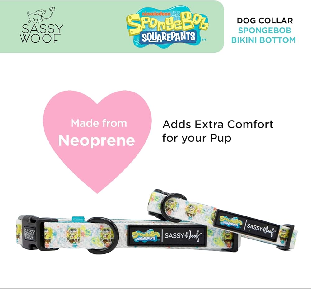 Sassy Woof Dog Collar Spongebob Squarepants™ Bikini Bottom - S, Adjustable, Durable, Comfortable and Stylish Pet Accessories for Small Dogs - Officially Licensed