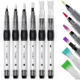 JusArt Water Brush Pens 6-Pack Leak-Proof Refillable Watercolor Pens for Acrylic and Gouache Painting - Includes Pointed & Flat Tip Styles - Portable Water Brushes for Artists, Beginners, Adults