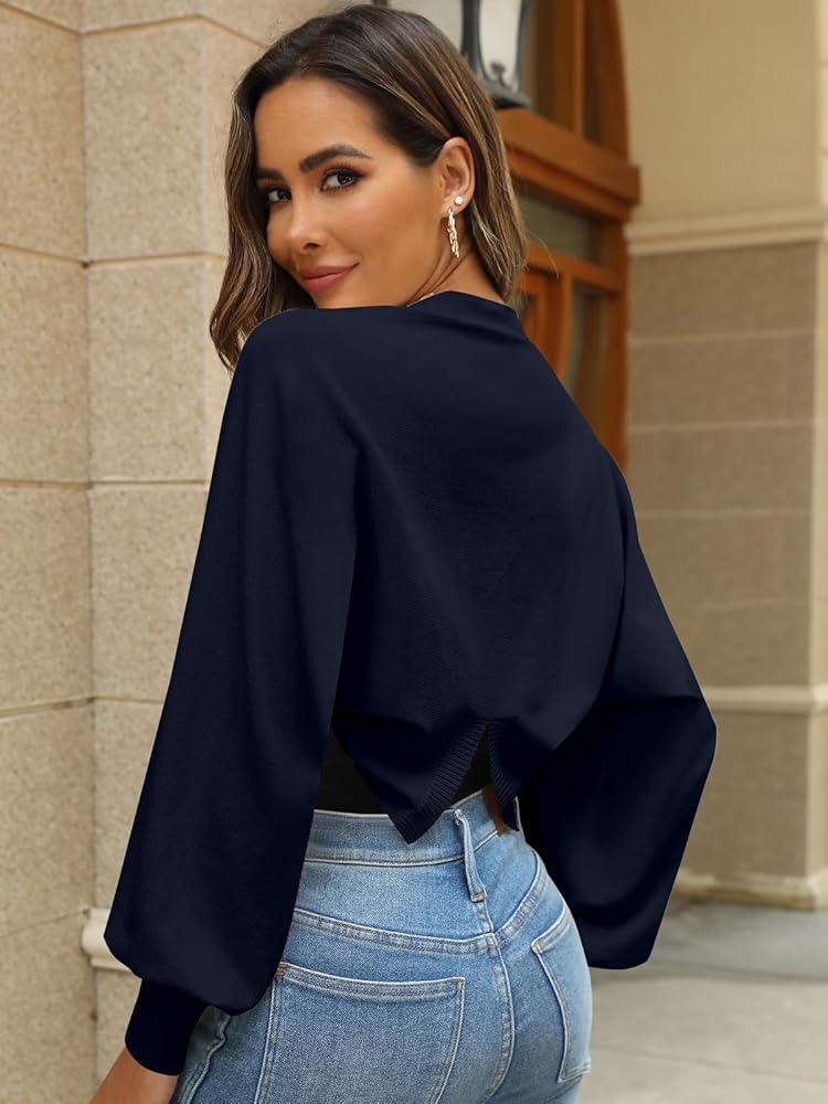Fashion Feature: Chic aesthetic crop cardigan for women, puff sleeve, long sleeve, split back, open front, drop shoulder, plain color, stretchy knitted, casual crop sweater bolero shrug for women