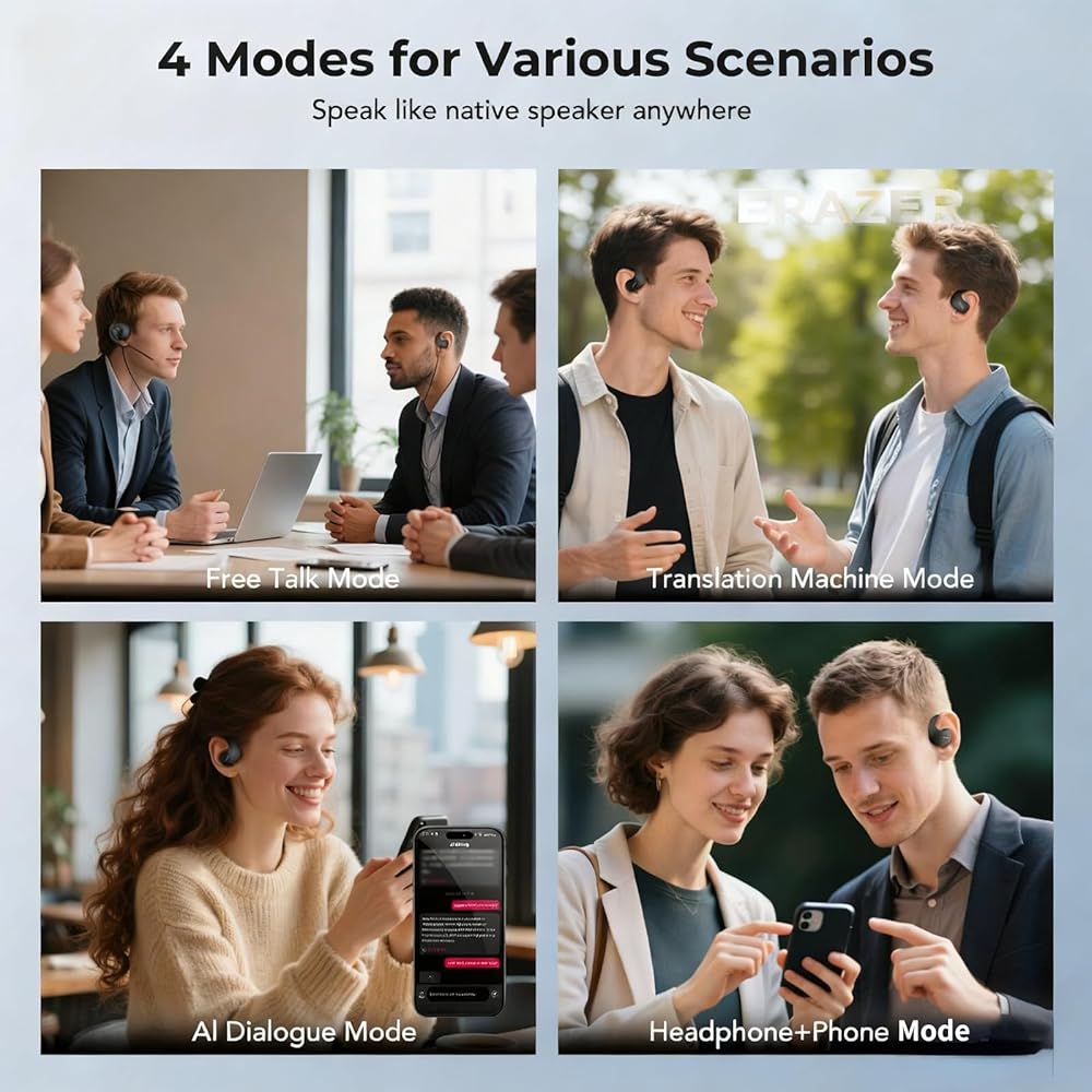 【135 Languages Translation Earbuds】These ERAZER X5 ai translation earbuds are a practical tool for travelers and multilingual professionals who need on-the-go language support. Capable of translating in real time for over 135 languages, they bridge communication gaps effortlessly. One standout feature is the ability to share one earbud with someone else for direct two-way translation.
