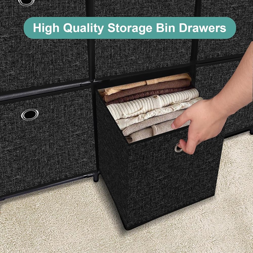【Stable Structure】Metal frames are connected by sturdy plastic connectors, covered with high-quality fabric top, enabling this cube storage shelves to hold up to 25LB. Anti-tip kit is provided for added stability. Tough and breathable non-woven fabric cube drawers work with metal loop handles for smooth pull-in and out.