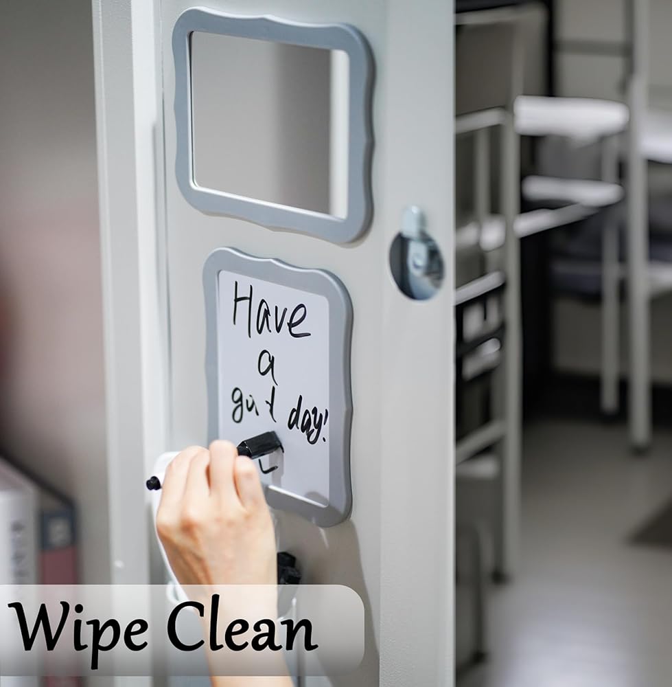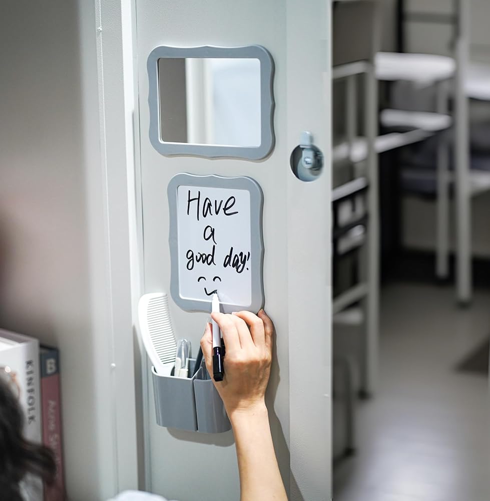 Locker Organizer Kit,Magnetic Locker Accessories for Girls with Locker Mirror and Magnetic Pen Holder,Magnetic whiteboard-School& Work Locker Decor(Grey