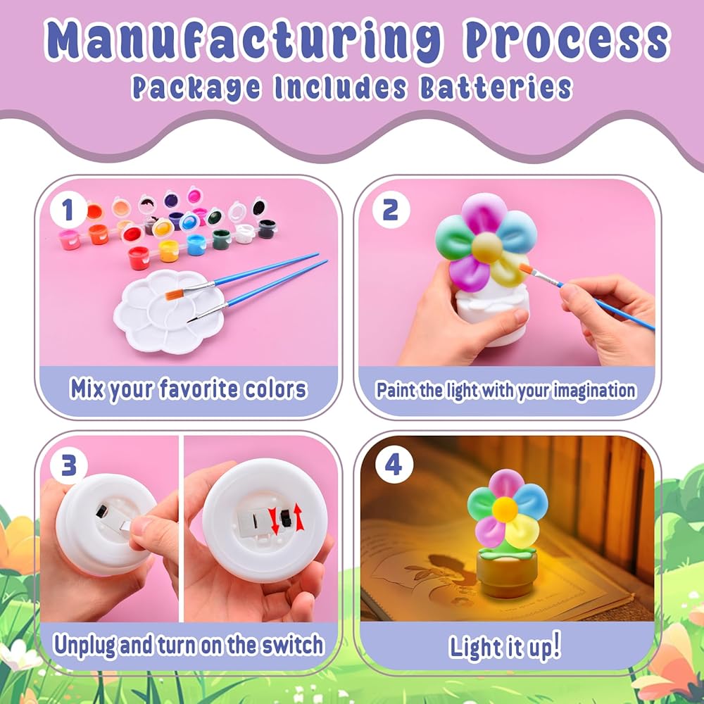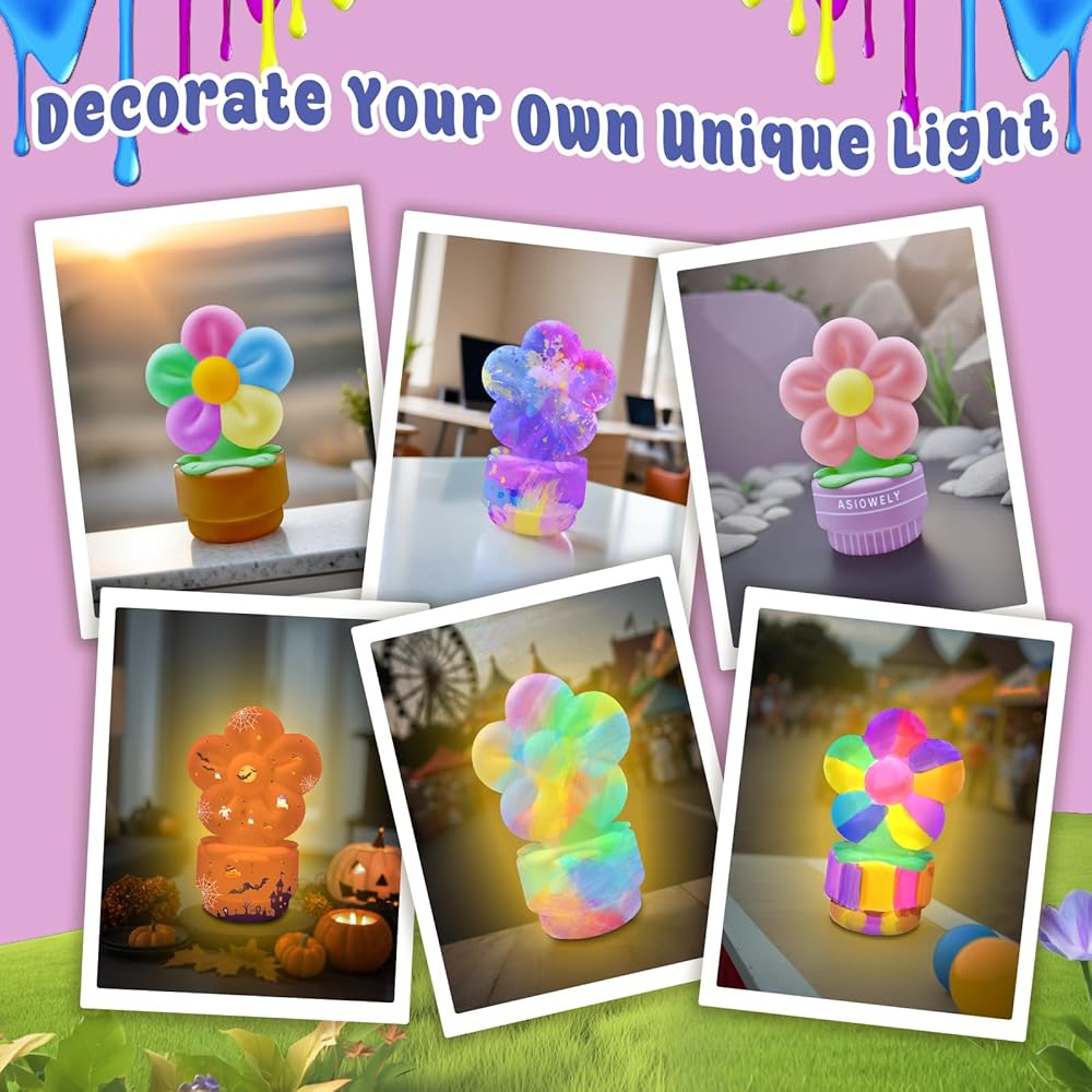ASIOWELY Paint Your Own Flower Lamp Kit,Arts and Crafts Supplies for Kids Toys Ages 4-6-8-12,DIY Art Night Light Painting Set for Girls Ages 5-10,Birthday Gifts for 3-12 + Year Old Toddler Teens Adult
