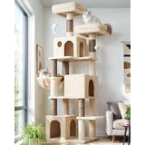 Various Entertainment Features: Equipped with 2 square perches, 3 cat caves, 1 soft hanging basket, 6 scratching posts, and hanging toys, the F71 tall cat tower is not just a resting place for your cats but also their playground