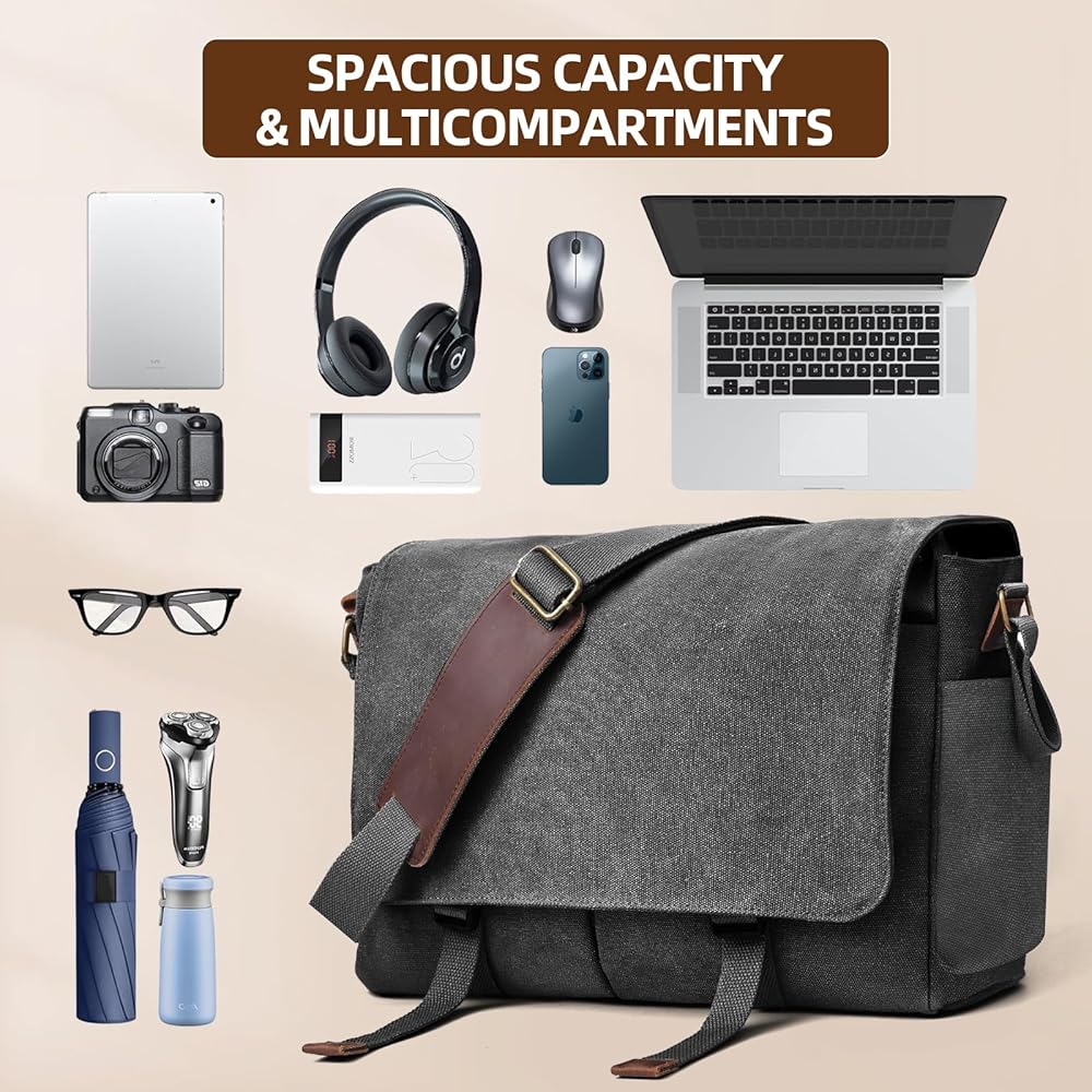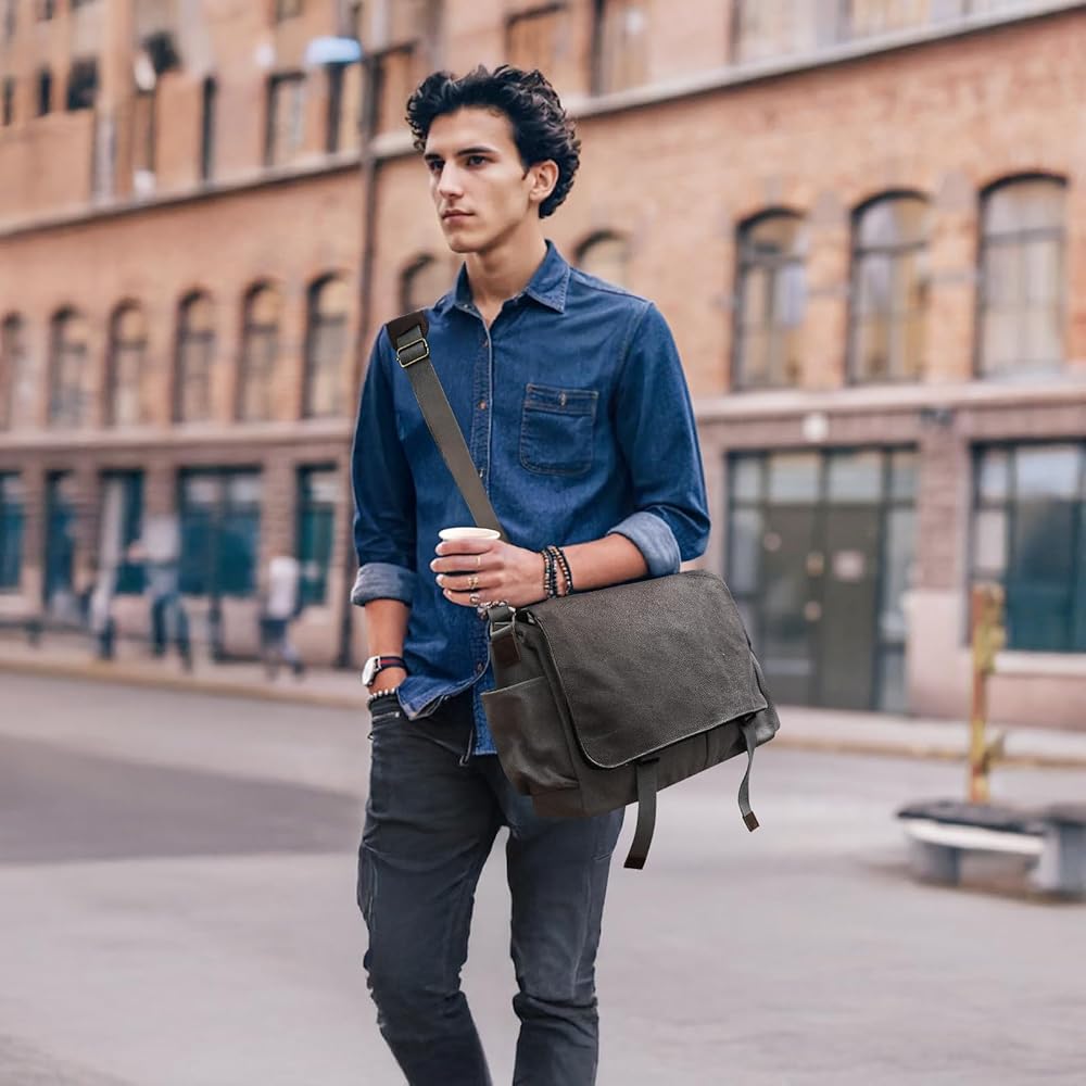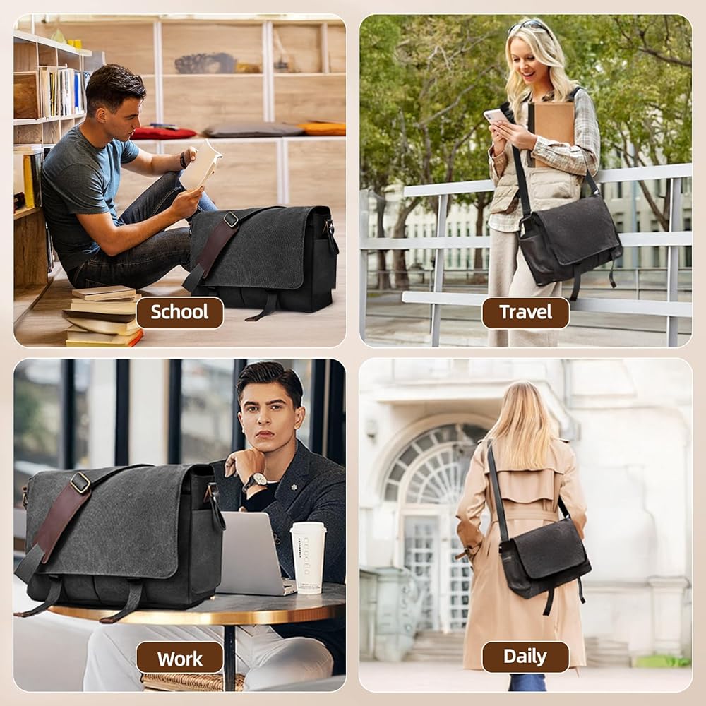Classic Retro Design - Crafted with high-quality canvas paired with top-grain Crazy Horse leather, featuring durable plastic snap buckles and metal buckles. This sturdy, vintage-inspired messenger bag boasts a unisex design, perfect for daily commuting, business, travel, campus, and various other occasions