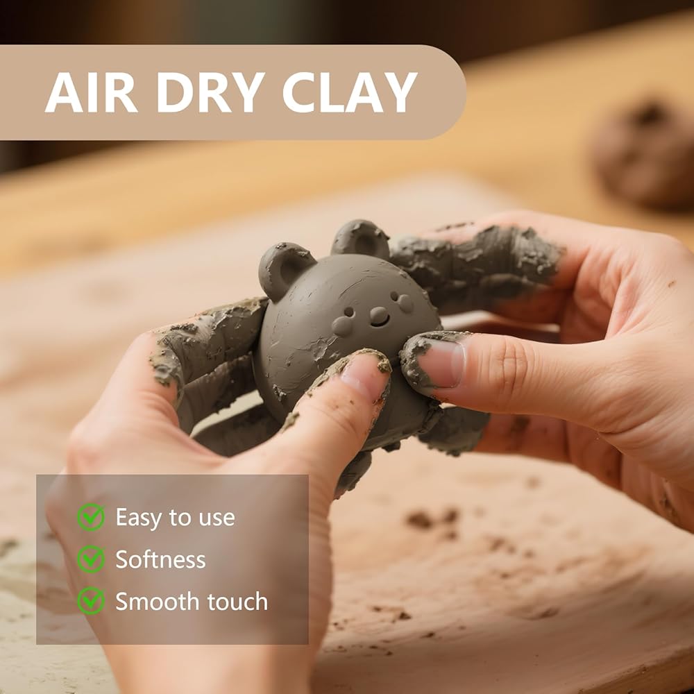 PREMIUM CLAY- These natural air-dry clay is porcelain, also known as kaolin with a fine and uniform texture, smooth touch, not adding any chemical materials, non-toxic and odorless, easy to process with various tools