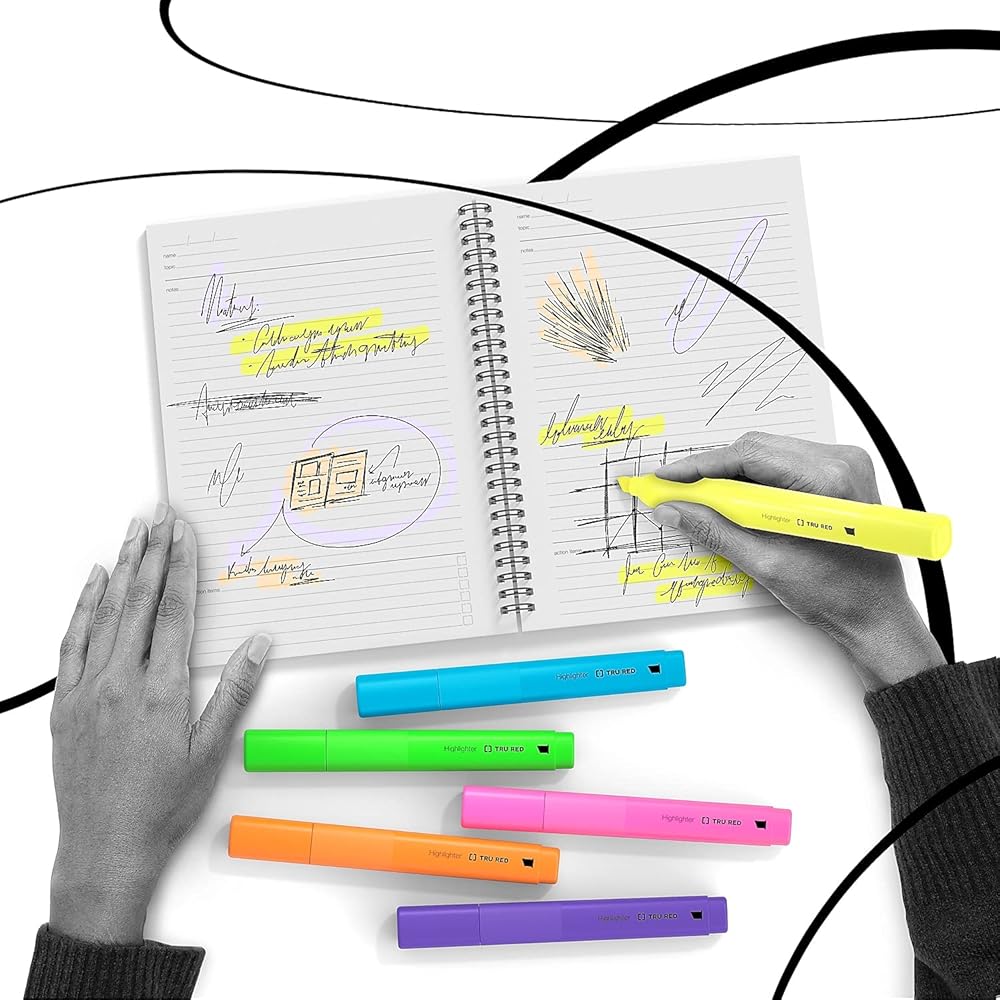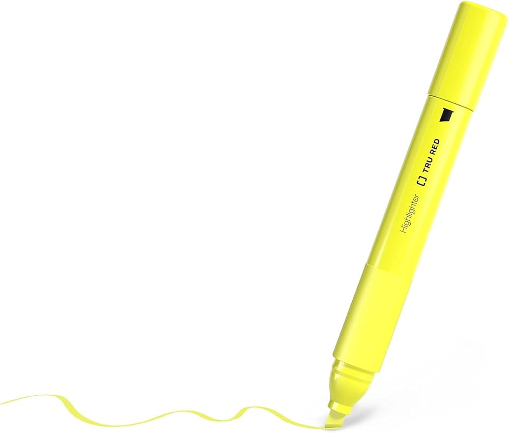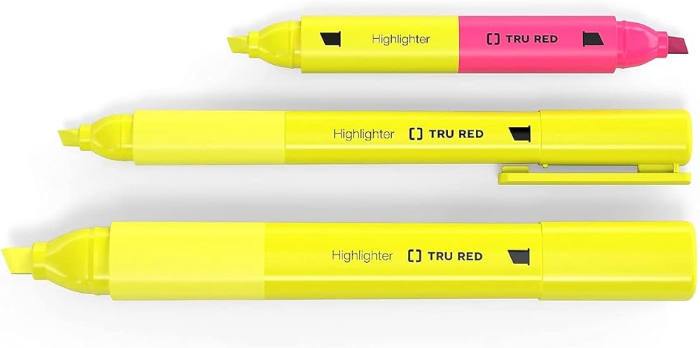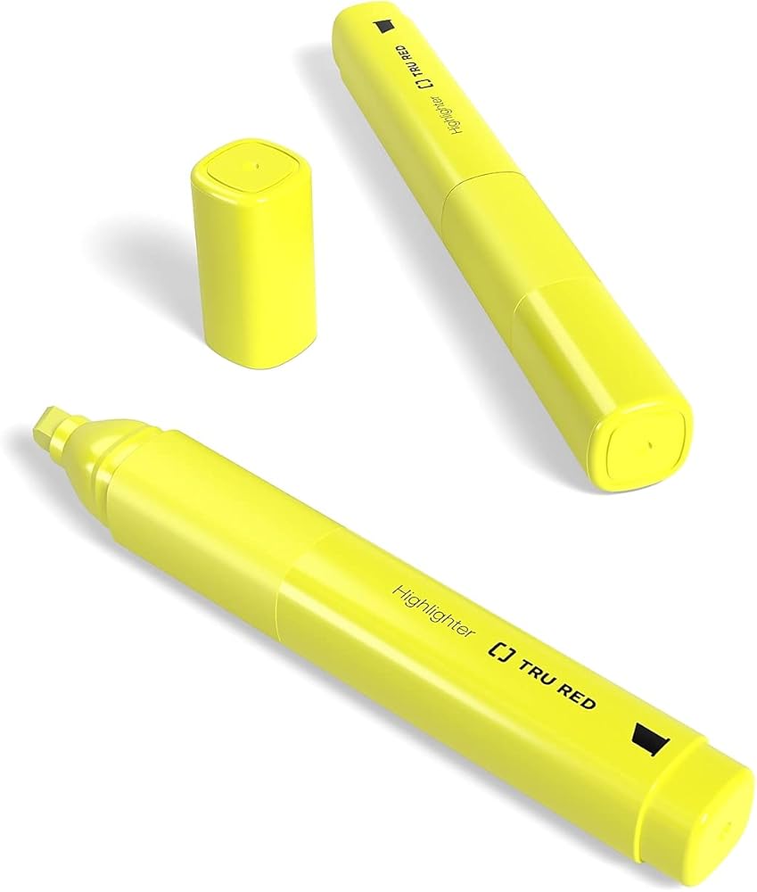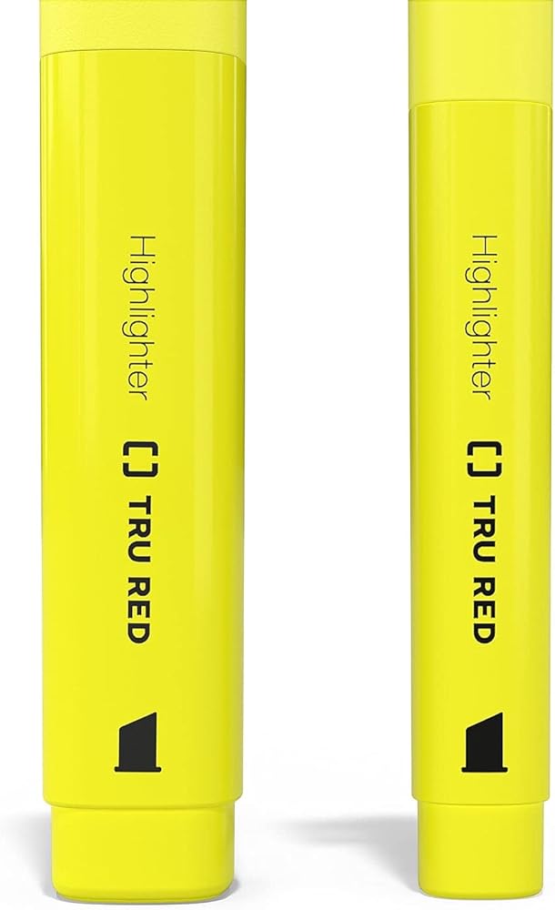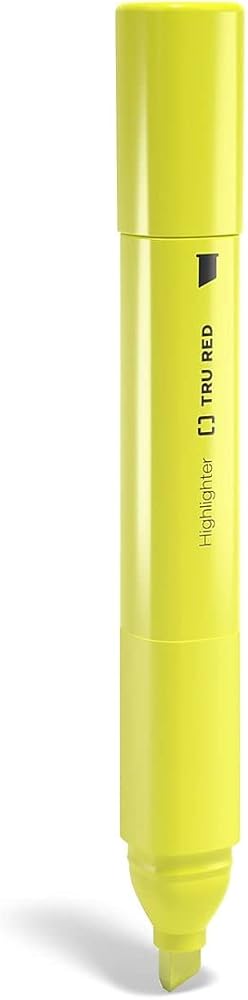 Emphasize important text with this 5-pack of TRU RED yellow tank highlighters with grips.Mark the most important part of any printed page by using these tank highlighters with comfortable grips. A 300-meter writing life provides enough ink to tackle a large workload. Each highlighter in this 5-pack of yellow TRU RED tank highlighters features a chisel tip for improved versatility for broad strokes or finer lines.
