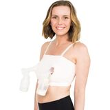CUSTOMIZABLE & CONVENIENT - This bandeau style, hands-free breast pump bra has a zip-in center panel in the front that allows for 1" of side-to-side movement for proper positioning of pump flanges. This item is not included with the bra but is available for free upon request.