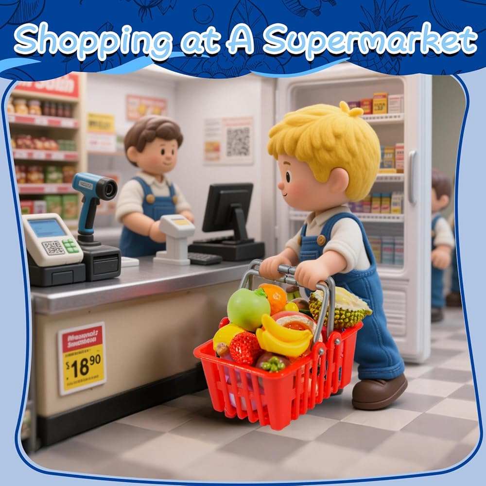 Various Mini Fruits: Includes 29 mini fruit figures approx 0.6inch-1.2inch, 1 shopping baskets and 3 small trays are convenient for storage and display, making your living space more tidy and organized