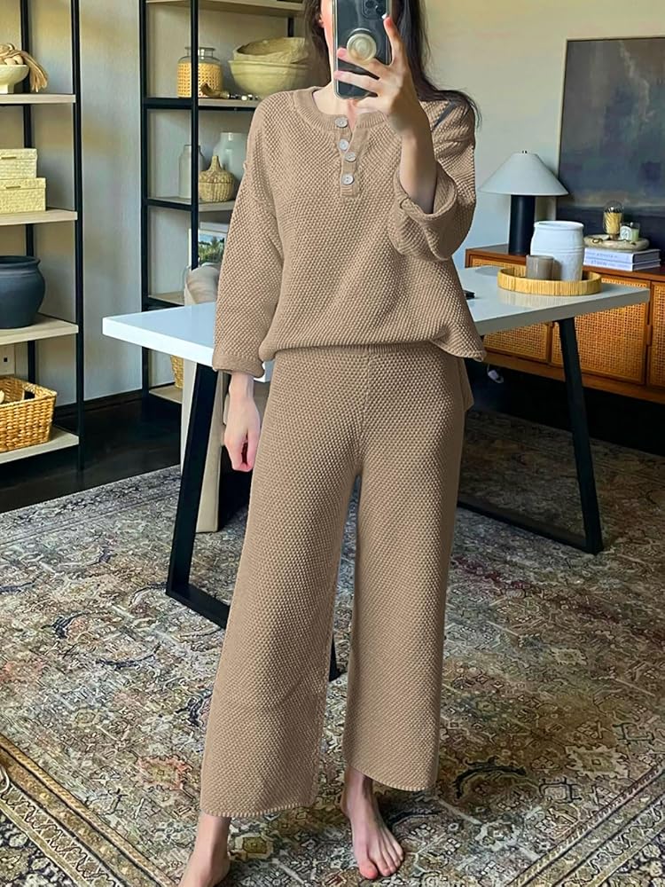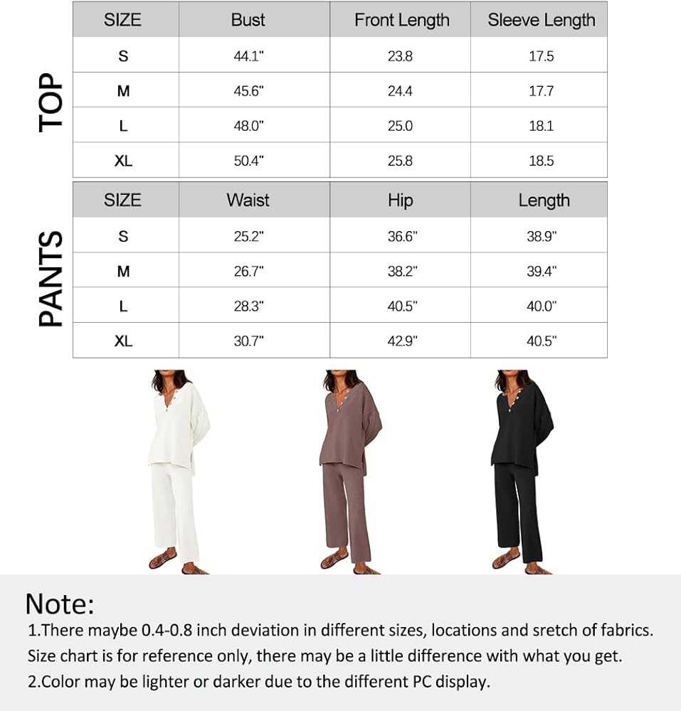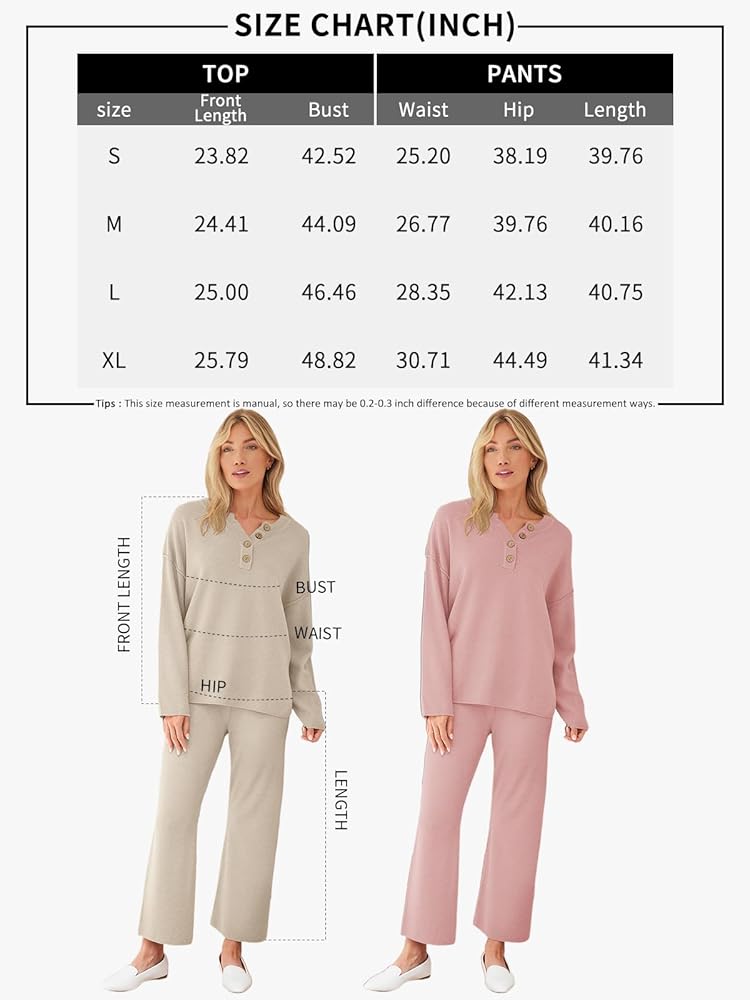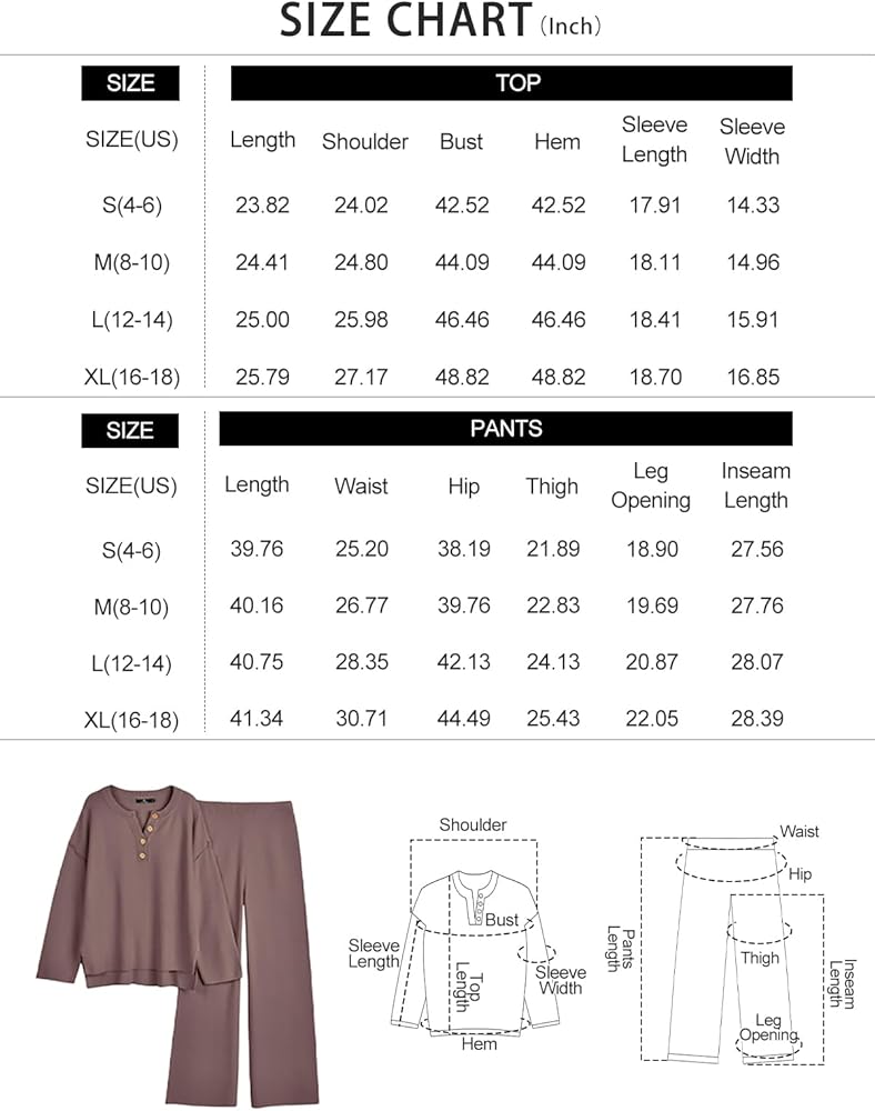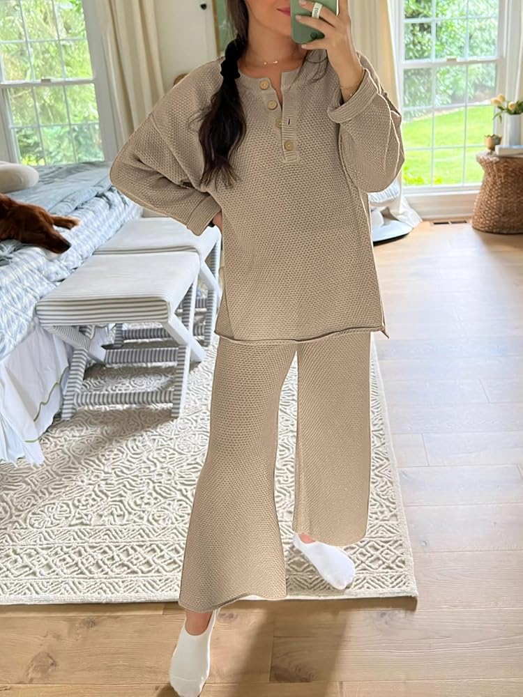 • Design: Top: crew neck, button design, long sleeve, oversized loose, side slit, dropped raglan sleeves; Pants: Elastic waistband, high-rise design, pull-on style. Worn as a set or separately to run errands or wear boots and wear it to dinner, it is so versatile you can wear it anyway you want.