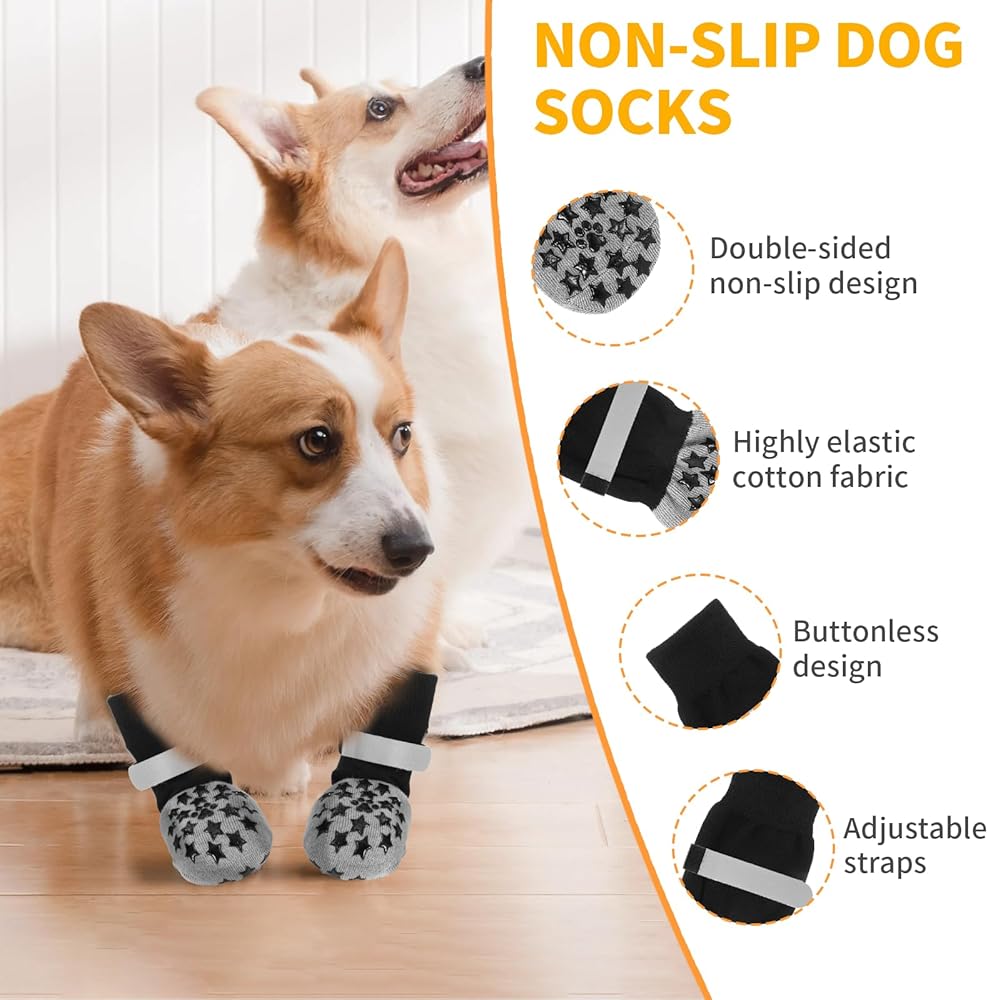 Ideal for senior dogs needing extra traction, active pups navigating slippery floors, or pets recovering from injuries, dog non slip socks for senior dogs ensure stability and comfort indoors and outdoors. The double-sided grip design prevents slipping, even if the dog shoes twist during movement.