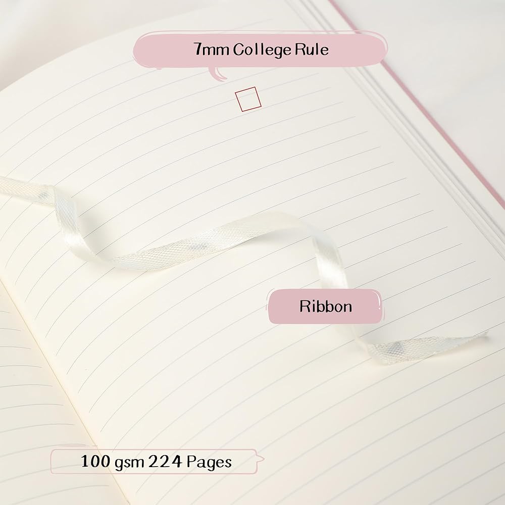 【Detailed Description】MGGAO College ruled journal is made of 100 gsm thick paper that is 20% thicker than regular paper and resistant to penetration. 224 pages (112 sheets) 7mm spaced horizontal lines, 1 bookmark. Perfect for note-taking, journaling and memos in neat college horizontal lines.