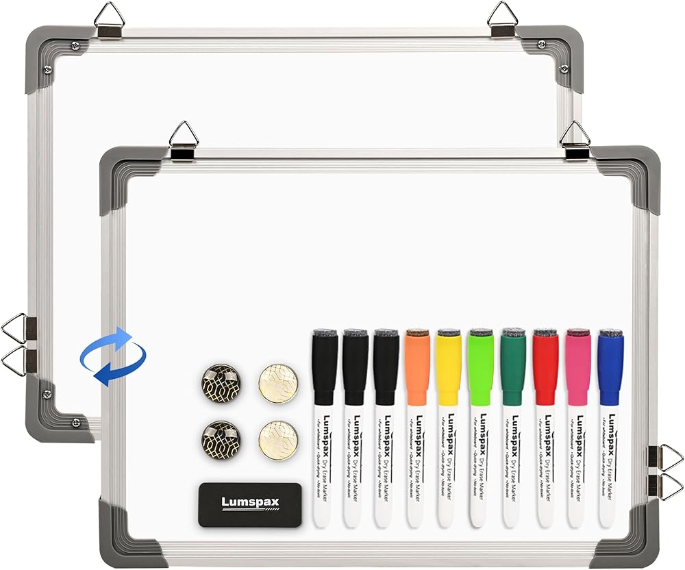 Small Dry Erase Board for Wall, 16" x 12" Double-Sided Hanging Whiteboard, Dry Erase White Board with 10 Markers, 4 Magnets and 1 Eraser, Portable Whiteboard for Home, Office, School