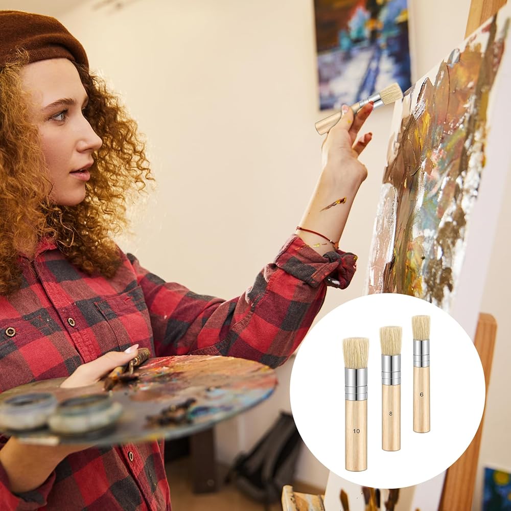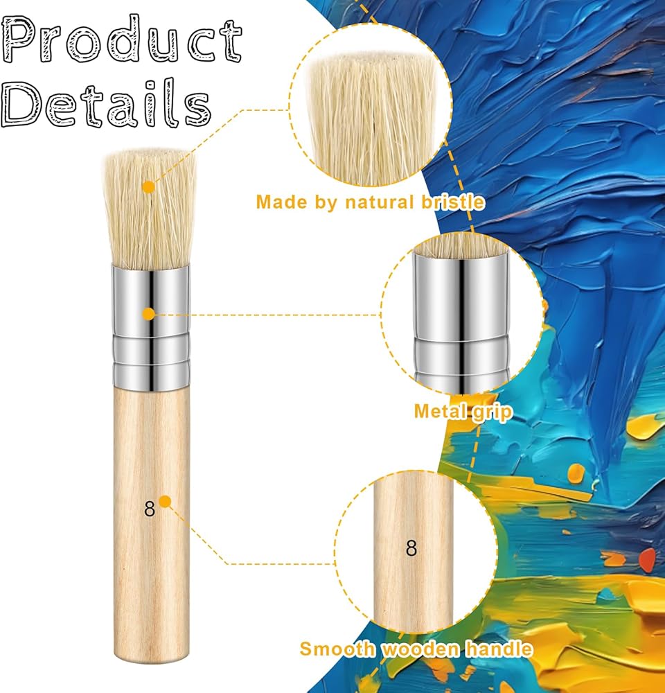 Comfortable Wooden Handle: Designed with a smooth, natural wooden handle, these natural stencil brushes provide a comfortable, non-slip grip. This ergonomic design ensures effortless control while painting, making them ideal for both beginners and professionals.