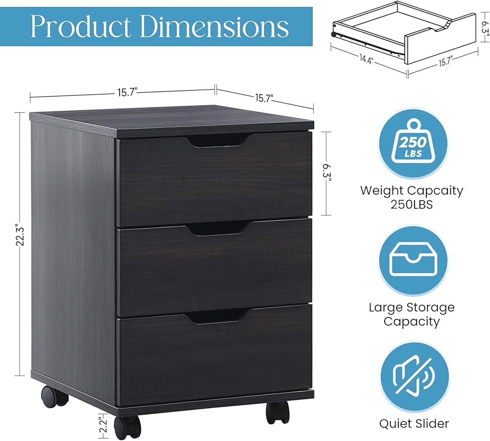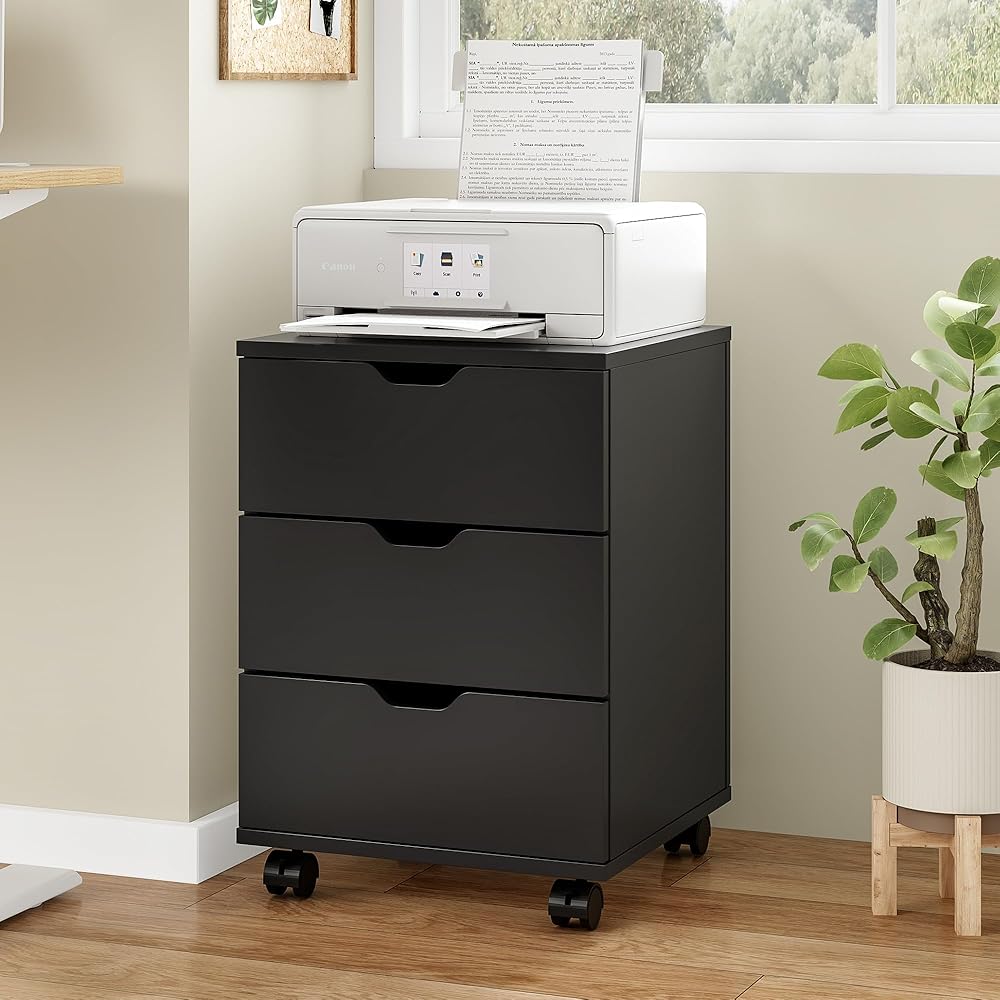 Space-Saving Under-Desk Design – This compact wooden file cabinet fits neatly beneath most desks, maximizing workspace efficiency while providing organized storage for files, office supplies, or personal items.