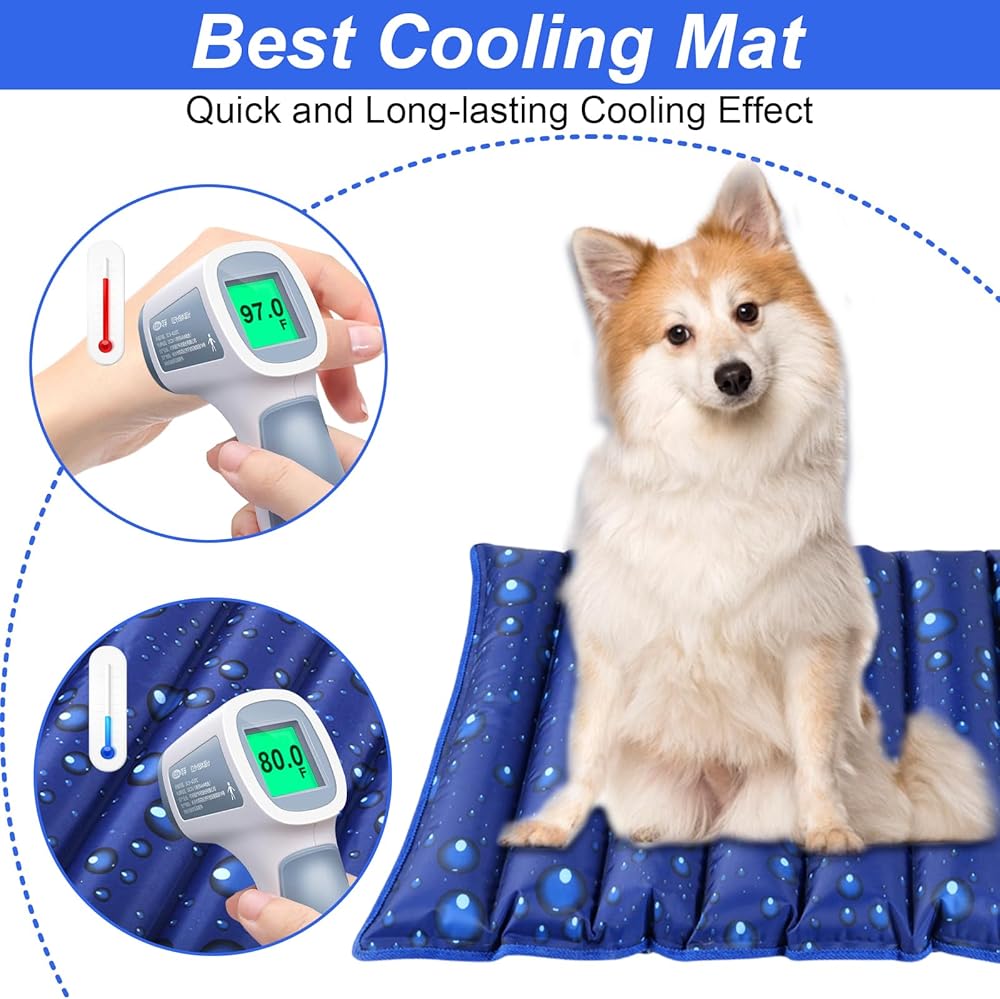 Dog Cooling Mat, 35.4" x 18.9", Cooling Mat for Dogs and Cats, Suitable for All Types of Pets, Durable Cooler Fabric for Better Cool Sensation, Keeping Pets Cool in Summer Heat (Dewdrop)
