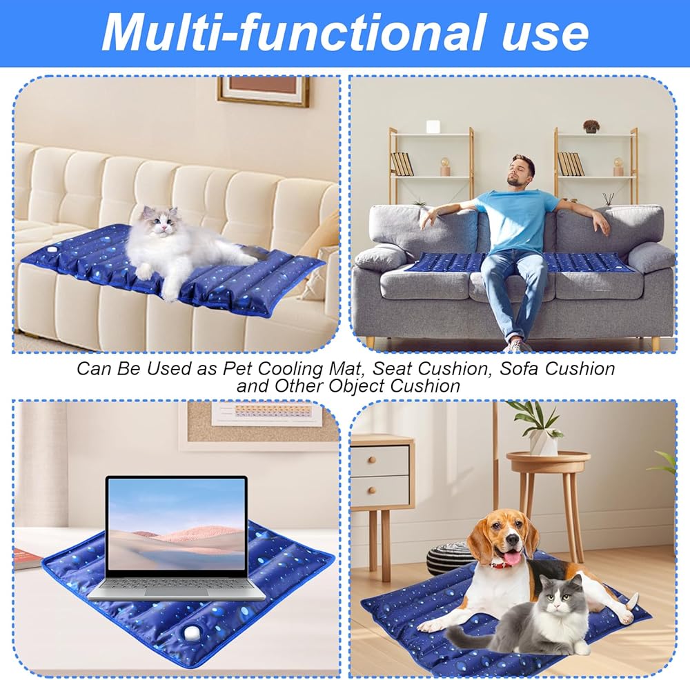 ❄️Multi-Functional: Multi-scene multi-purpose, suitable for indoor and outdoor use and travel. Easy to fold and carry, can be used for floors, sofas, pet beds, car seats, etc. Used as a dog pad, seat cover or pad, both pets and family can enjoy the same cool feeling.