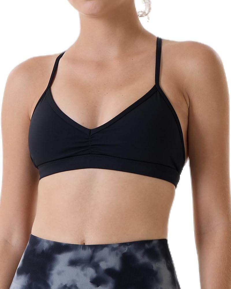 Removable Soft Pads: soft pads for the bralettes portion can be removed when you need wash.The top is flattering in the chest area, isn't too low or too high and there's plenty of comfortable space for the girls to breathe. The wireless cute sports bra is ideal for low to light impact activities like yoga, gym, walking, running, dance, workout class and everyday wear.