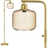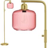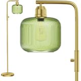 Glass Floor Lamp for Living Room, Modern Standing Lamp with Green Ribbed Glass Lampshade and Pedal Switch, 66" Tall Lamp & Gold Floor Lamp for Bedroom Study Room,Brushed Gold(3000K LED Bulb Included)