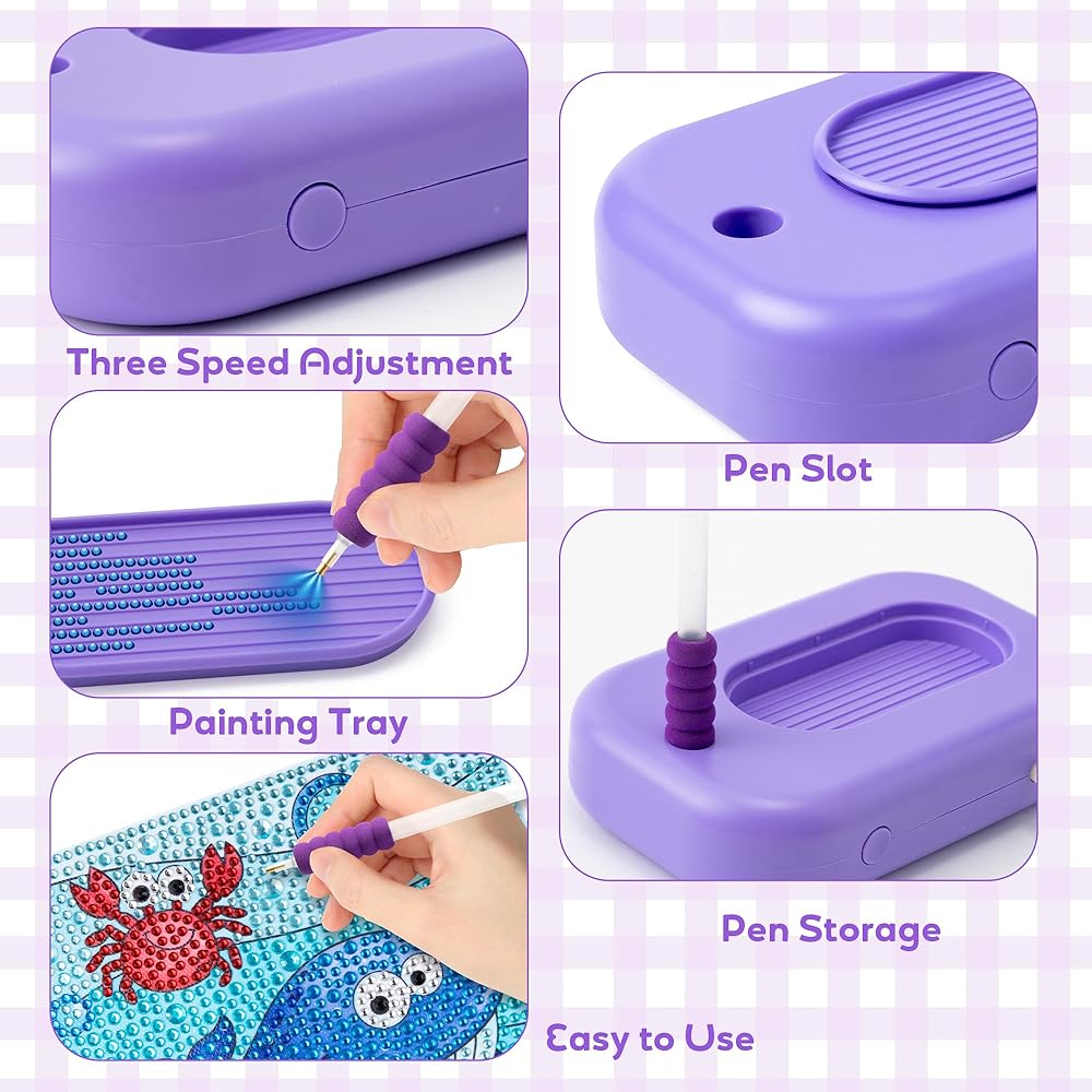 GQIRIL Electric Diamond Painting Pen - Vacuum Art Pen Kit for Adults, Adjustable Suction Art Paint Tool with Storage Tray, Painter Diamond Electric DIY Accessories Tool Set Without Wax (Purple)