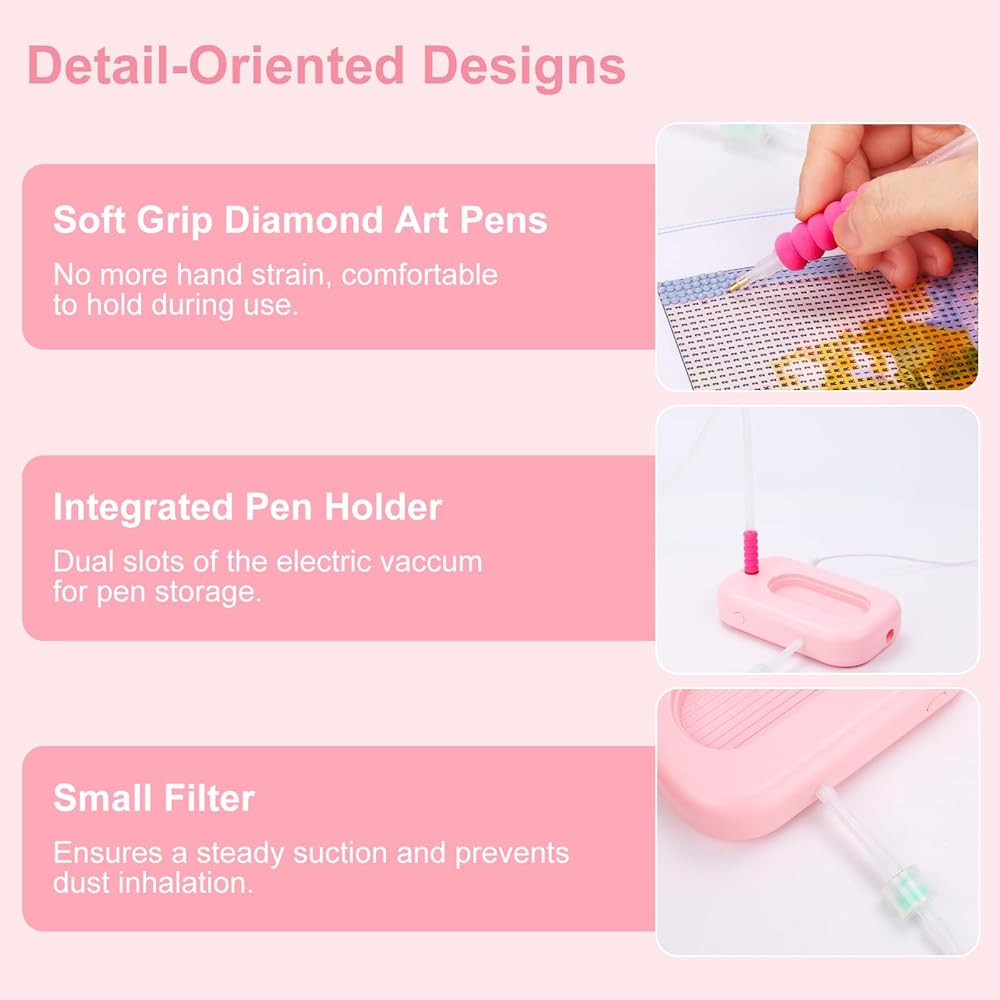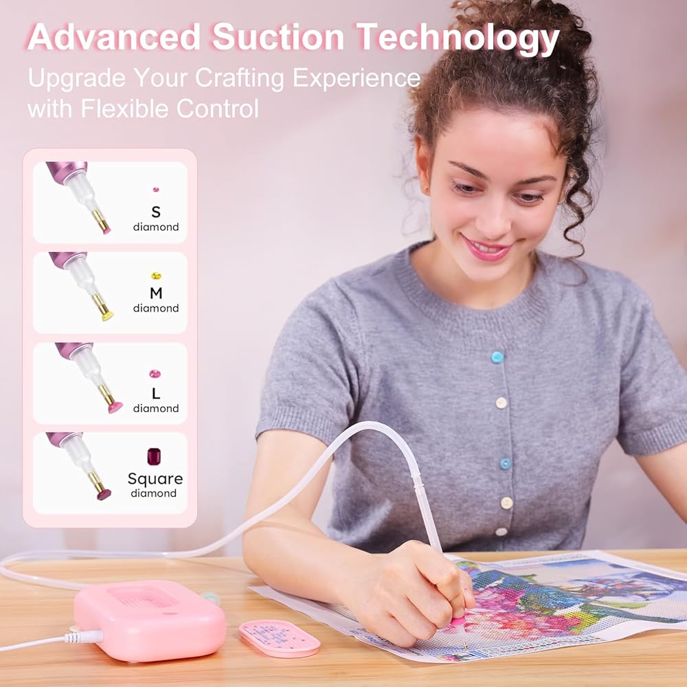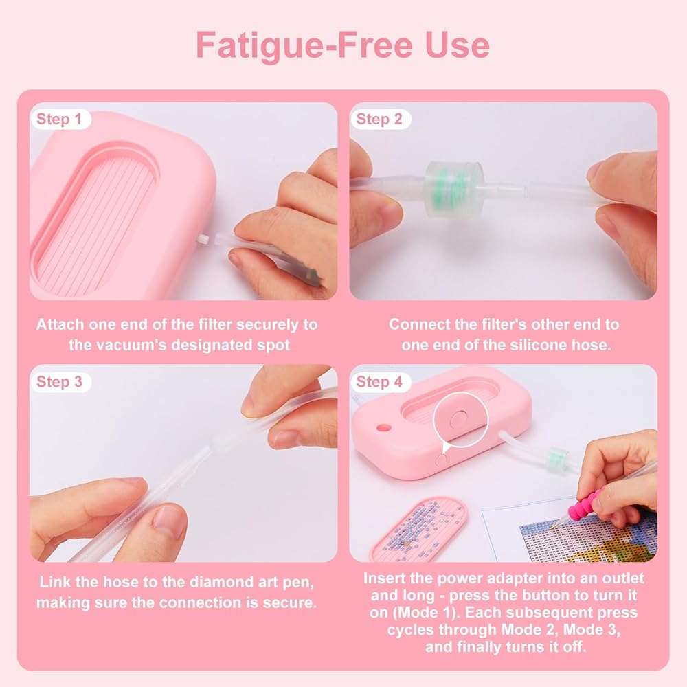 Ergonomic Designs - The contoured grip ensures lasting comfort throughout extended creative sessions. Featuring a plug-and-play design that requires no assembly, you can immediately begin diamond painting once the vacuum pen is powered on