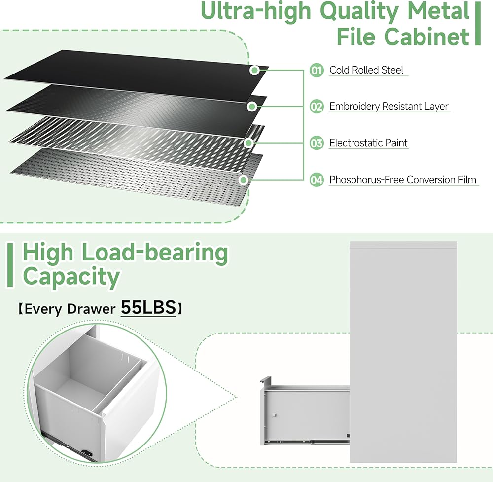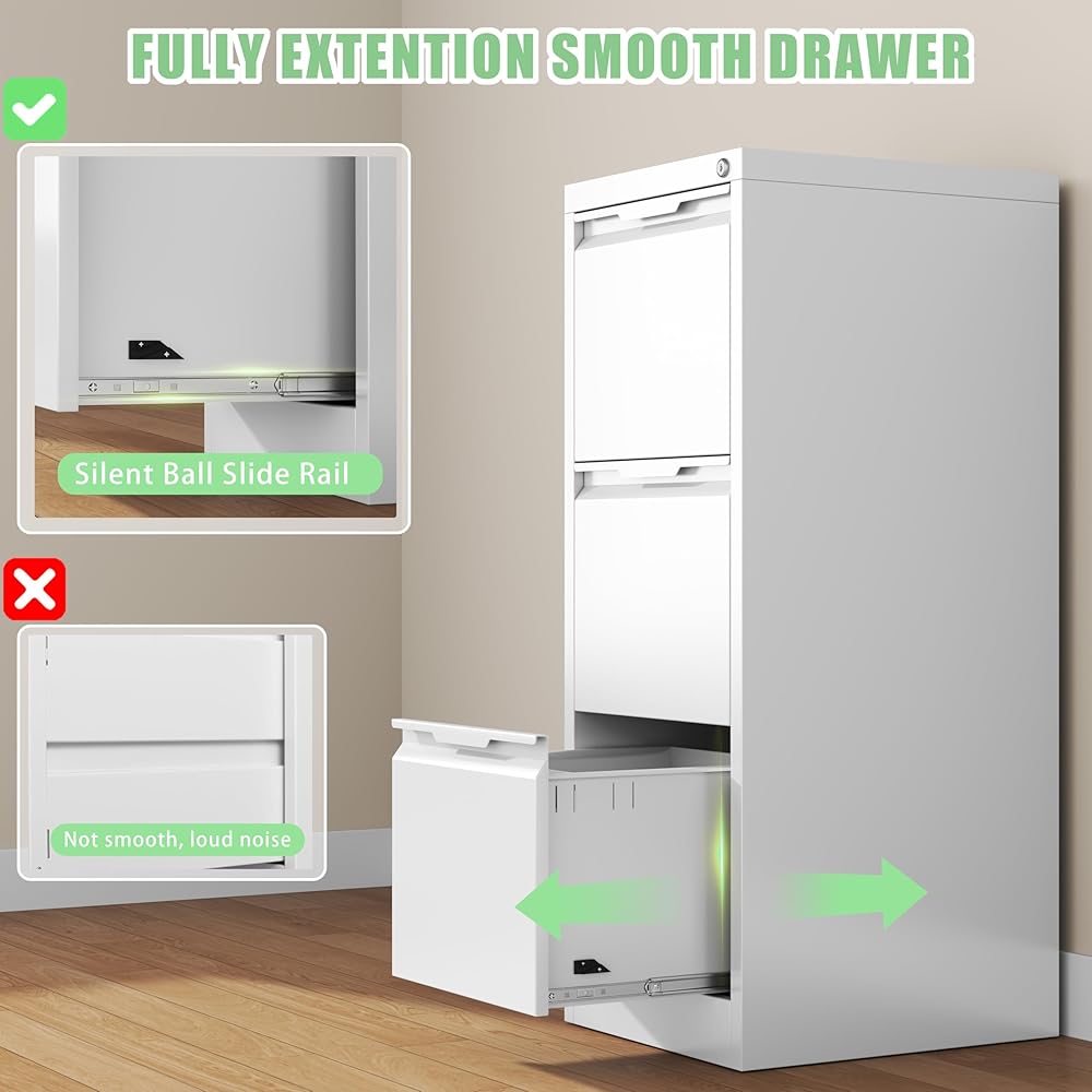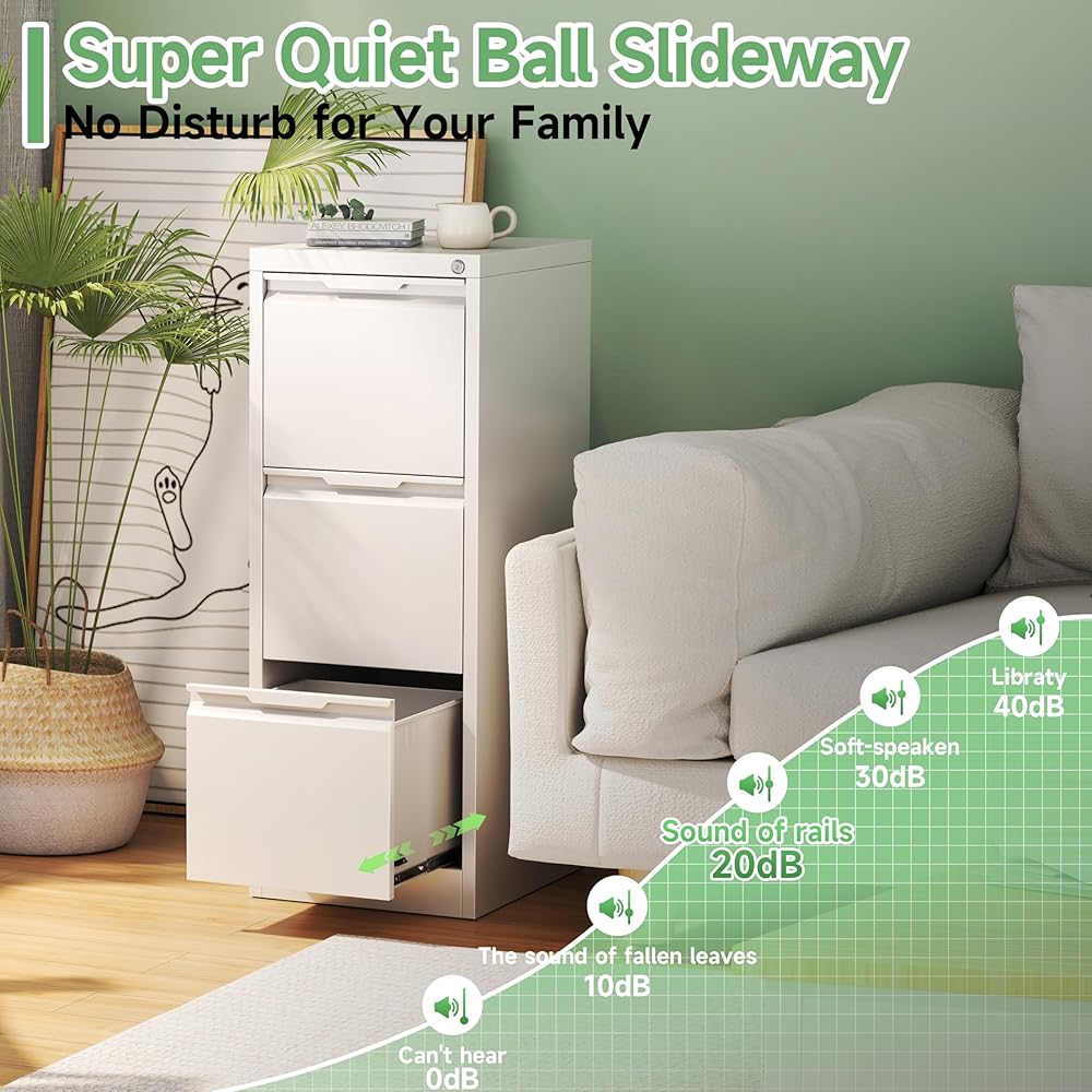 【Quiet & Smooth Glide Drawers】 No more struggling to open jammed drawers or stuck files with each drawer equipped with precision ball-bearing glides for easy opening, closing, and everyday use.Low noise levels allow you to work from home without worrying about disturbing your family's rest.
