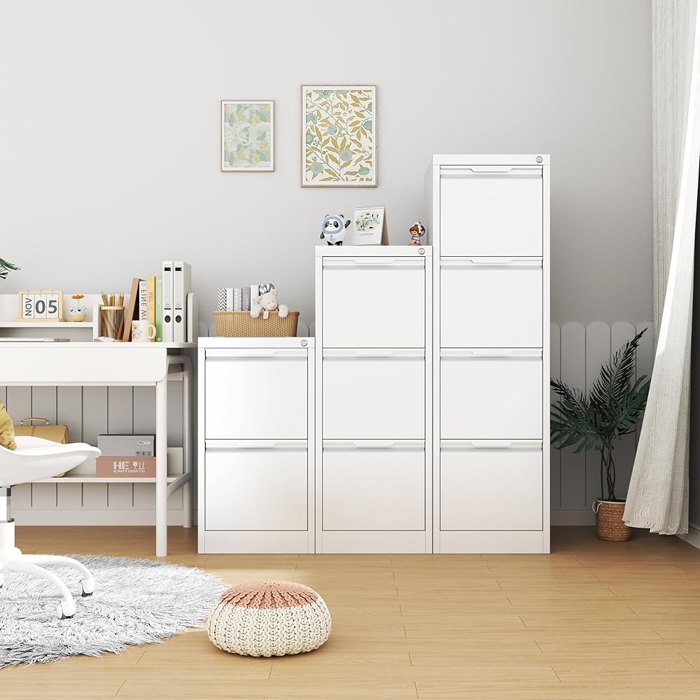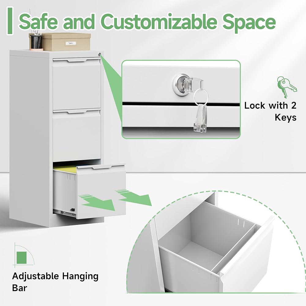 【Organize Your Office】 The vertical filing cabinet offers plenty of storage space for your office needs. It can storage letters/legal/A4/F4 sized files, keeping them neat and organized. Each drawer with lock is equipped with adjustable hanging rails, allowing you to customize the organization of your files.