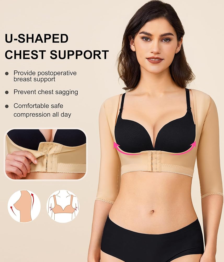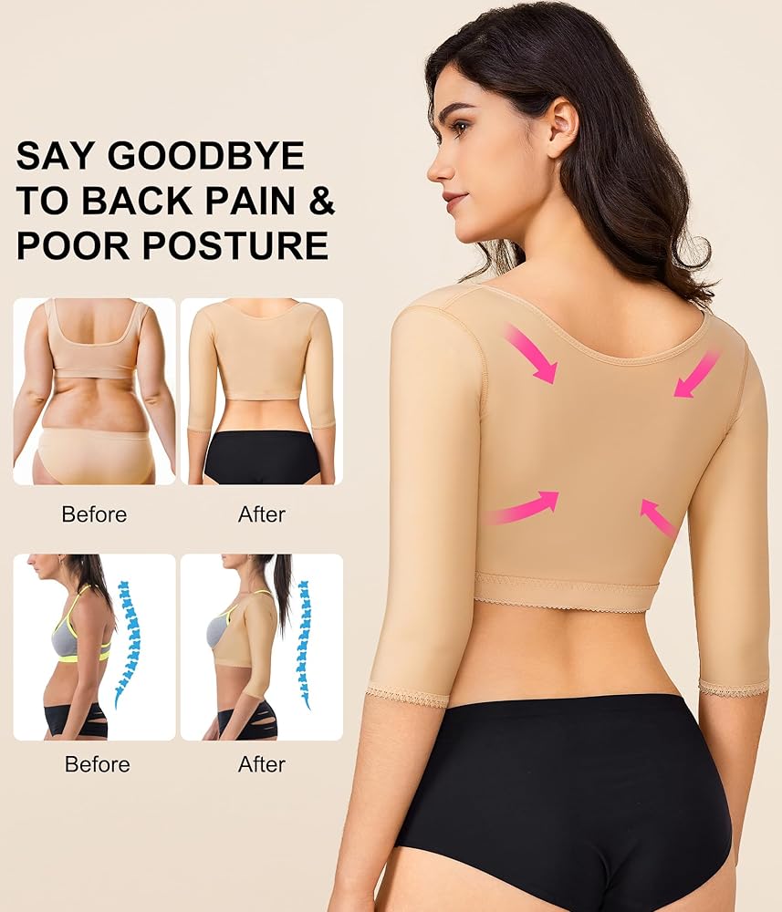 WORK AS POSTURE CORRECTOR. This slimming shapewear for women firm compression of upper flabby arms, pulls shoulders back for great posture, improve your posture and humpback, makes you more and more confident.