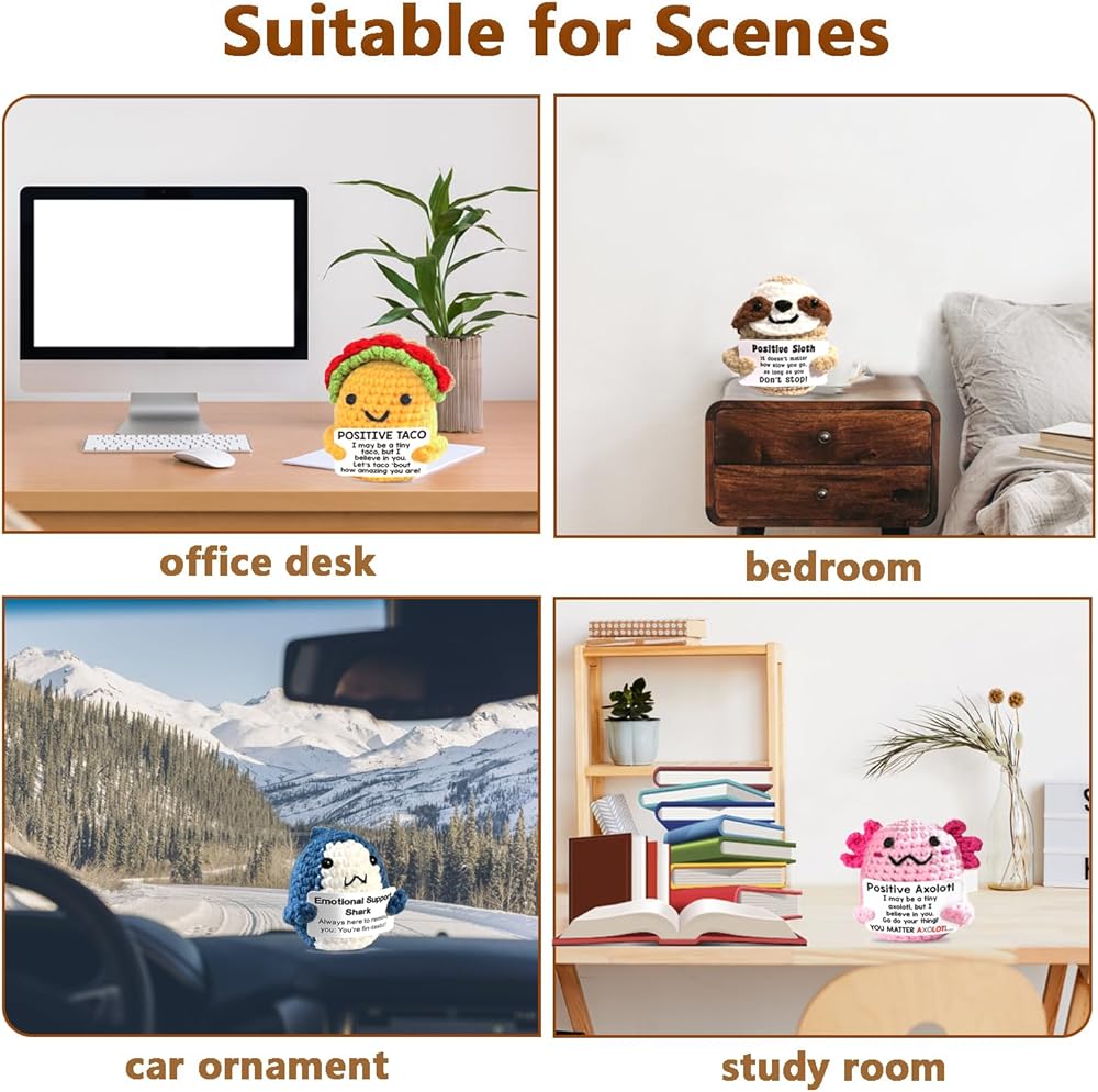 Perfect for spreading joy, positivity, and a touch of whimsy, our Positive Crochet Animals make the ideal gift for friends,