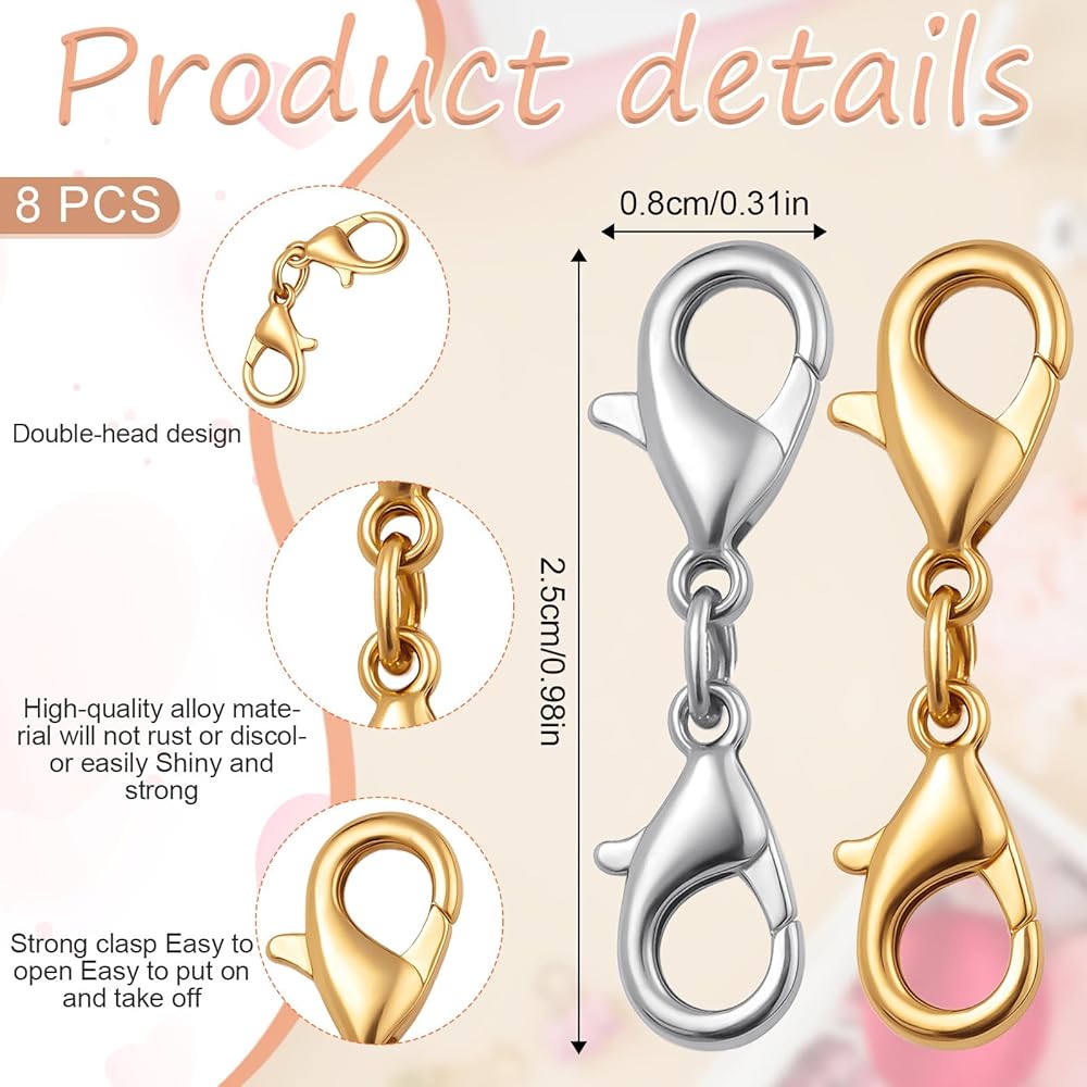 Reliable Material: Our double lobster claw clasp extender is made of alloy material, polished with fine craftsmanship, smooth appearance, sturdy and durable, not easy to break, not easy to fade, and can be used for a long time.