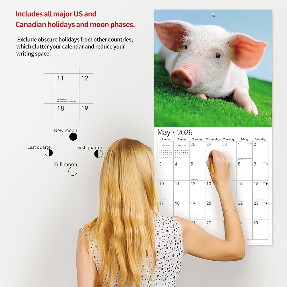 PROFESSIONAL CONTENT DESIGN - You'll love the feeling of bringing order and organization to your life.Oversized everyday blocks (1.5" x 1.9") give you extra space to jot down tasks and appointments. Includes all major US and Canadian holidays and moon phases. Exclude obscure holidays from other countries, which clutter your calendar and reduce your writing space.Size Closed: 12 x 12 inches.Size Open: 12 x 24 inches.