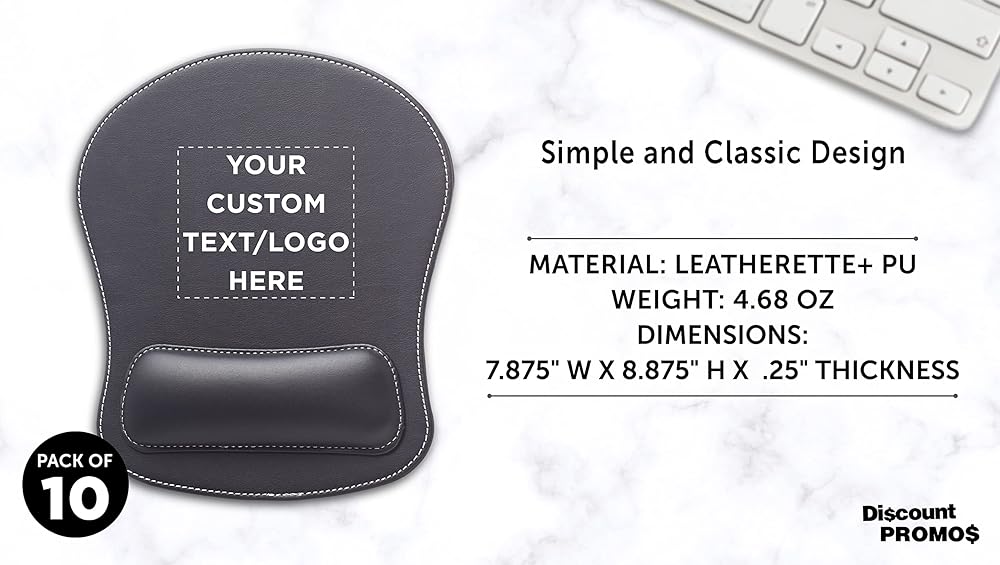 REUSABLE - These Executive Leatherette Mouse Pads are perfect to display and promote your brand name, company logo, and more.