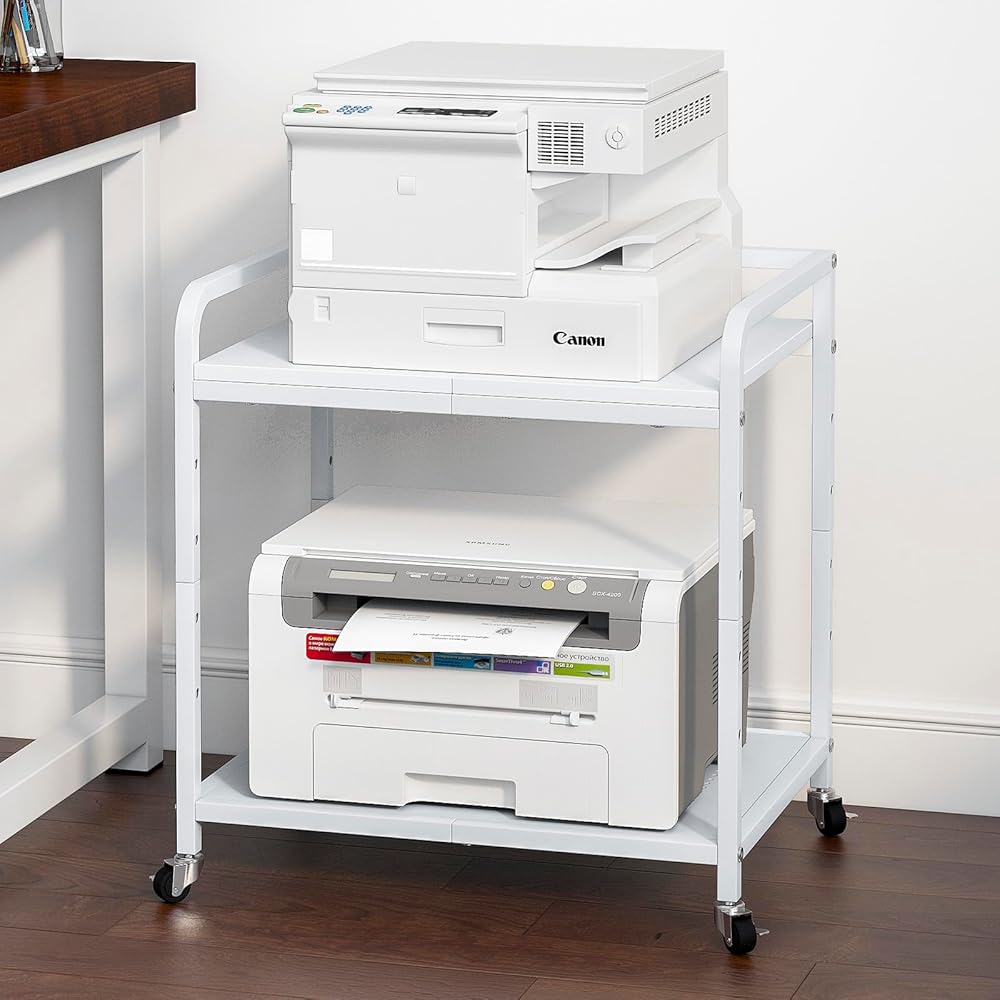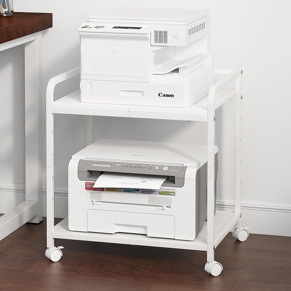 【Large Printer Stand】The 19.7"L x 15.8"W extra-large tabletop, which can hold 100 pounds each tier, is ideal for accommodating large and heavy printers, scanners, and other bulky equipment. Two-tier spacious storage shelves provide ample space for printer paper, ink cartridges, and a variety of office supplies.
