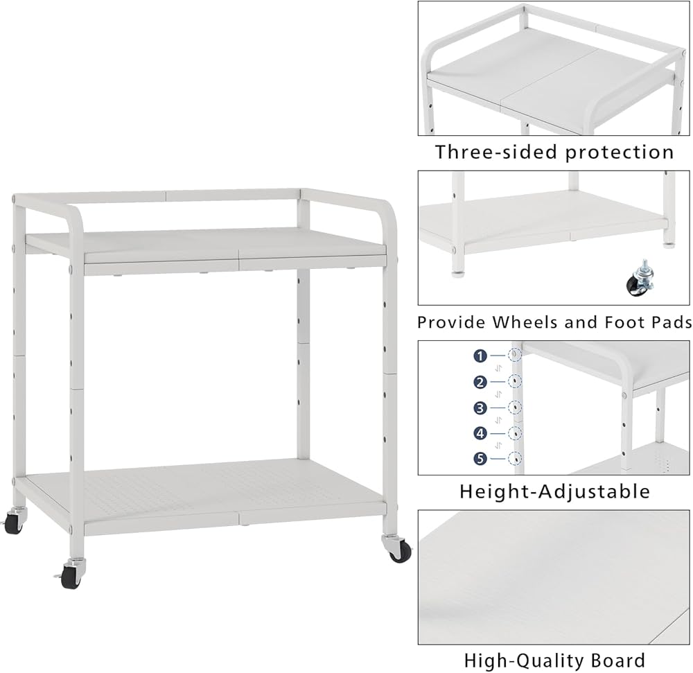 【 Adjustable Height 】Under desk printer stand top desktop is height-adjustable and comes in five heights to fit tables of all heights, so you can store printers of all sizes under the table.
