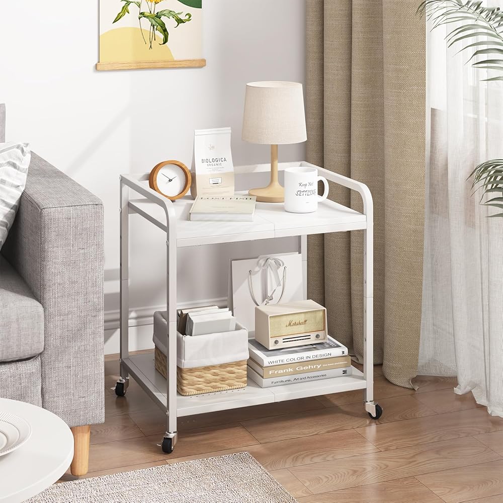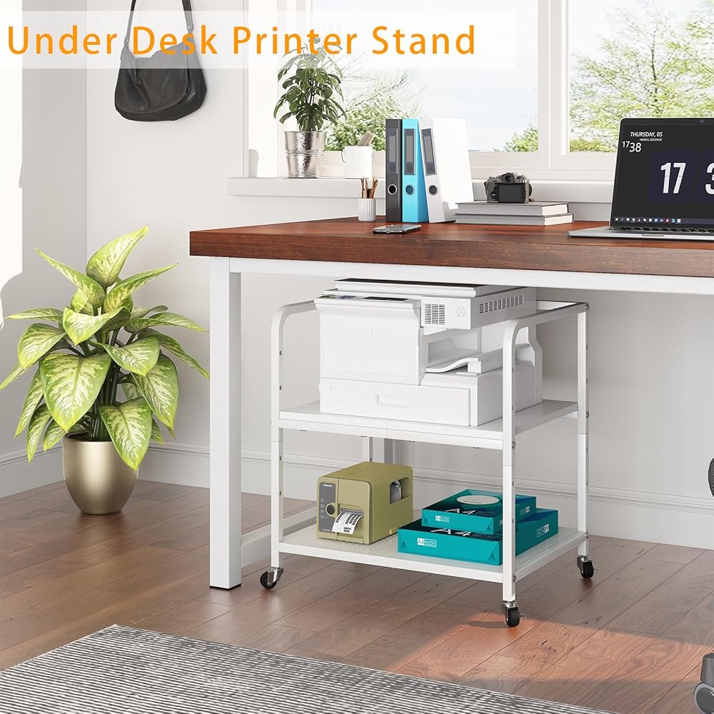 【Stable and Versatile】Printer cart with wheels is made of a sturdy metal frame and high-quality wood boards, ensuring reliable support. It can not only serve as a small printer stand, but also as a coffee table in the bedroom and living room, as well as a desktop storage rack in the kitchen and office.