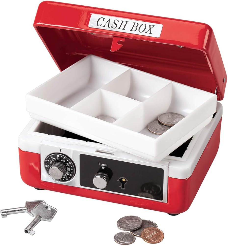 Safe Storage – Protecting allowances, tooth fairy earnings, baseball cards, shiny rocks and top-secret treasures, this solid metal money box requires both combination lock and key operation to open