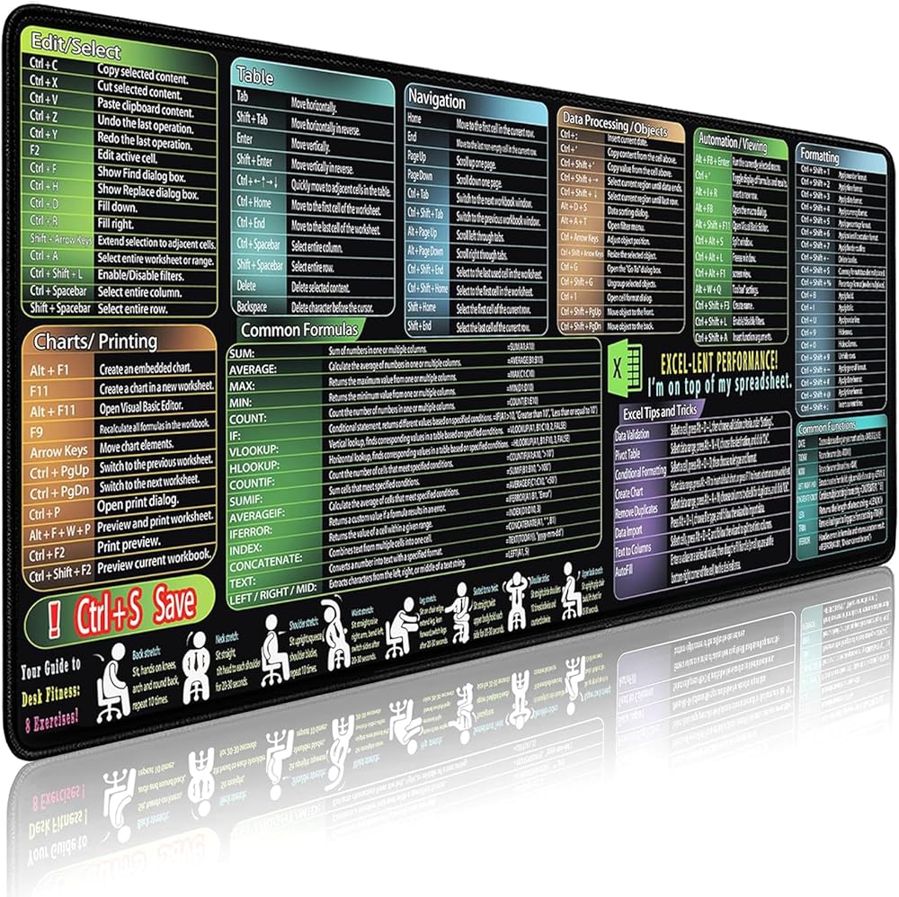 Ultimate Excel Cheat Sheet Desk Pad: This Excel cheat sheet desk pad supercharges productivity in both daily life and professional workflows, displaying essential shortcut keys for Excel, Word, PowerPoint, and streamline your daily tasks with unmatched efficiency.