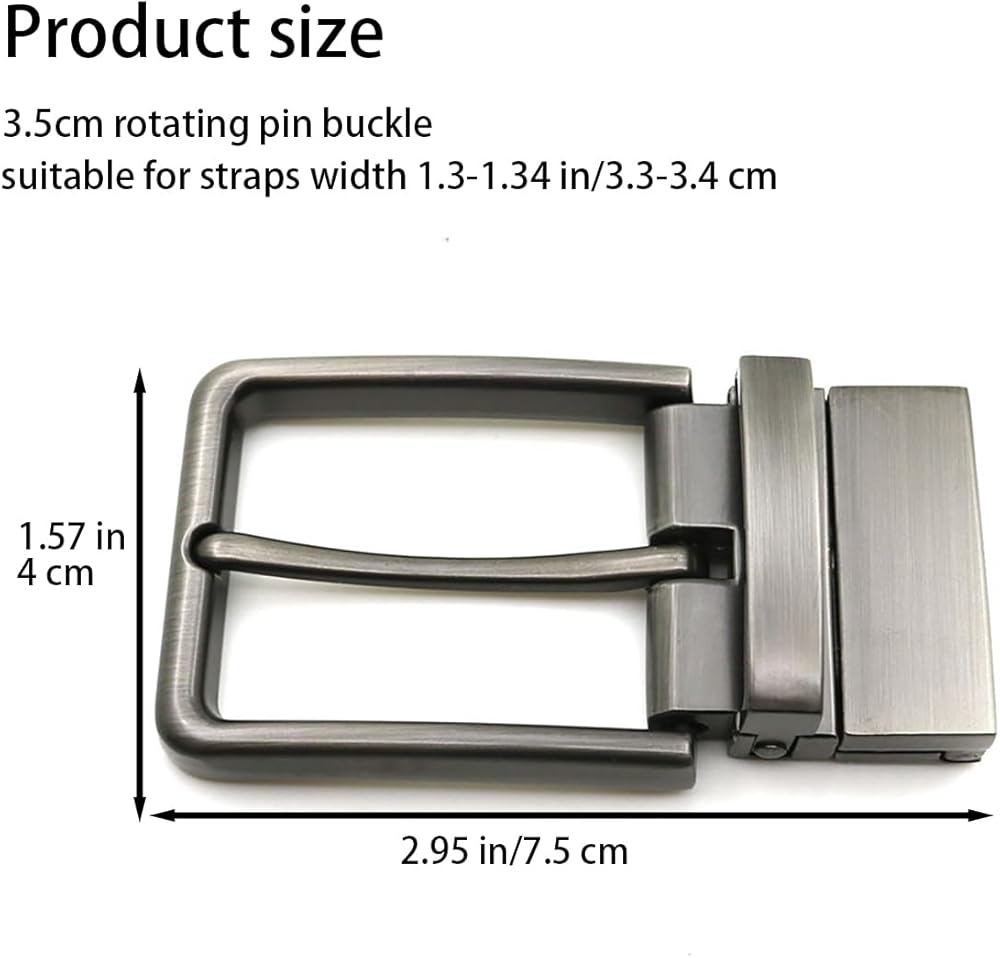 - Grey Alloy Belt Buckle: 1 pc grey alloy clamp-style belt buckle rotating pin, suitable for 1.3-1.34in (3.3-3.4cm) strap widths