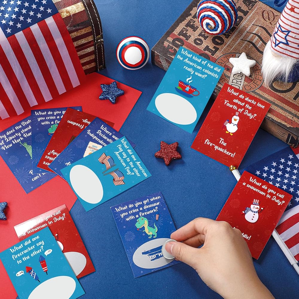 These Independence Day scratch cards feature jokes like "What do ducks love about the fourth of July? The fire-quackers! ". These funny jokes are sure to make men and women laugh.