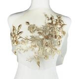 Carytalee 1 PC 3D Black Lace Flowers Fabric Embroidered Applique Beads Trim Patches for Wedding Bridal Dress Decoration DIY Sewing Clothing Decoration, 13 x 10 Inch