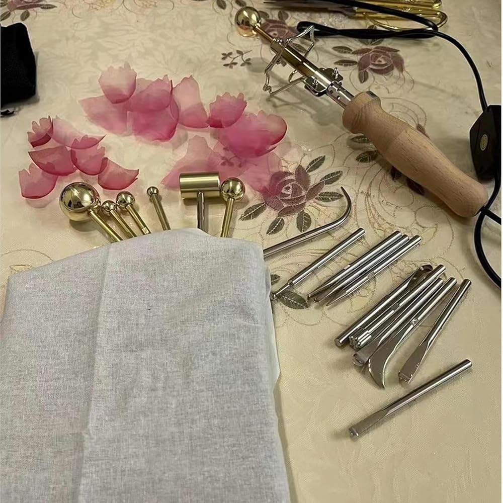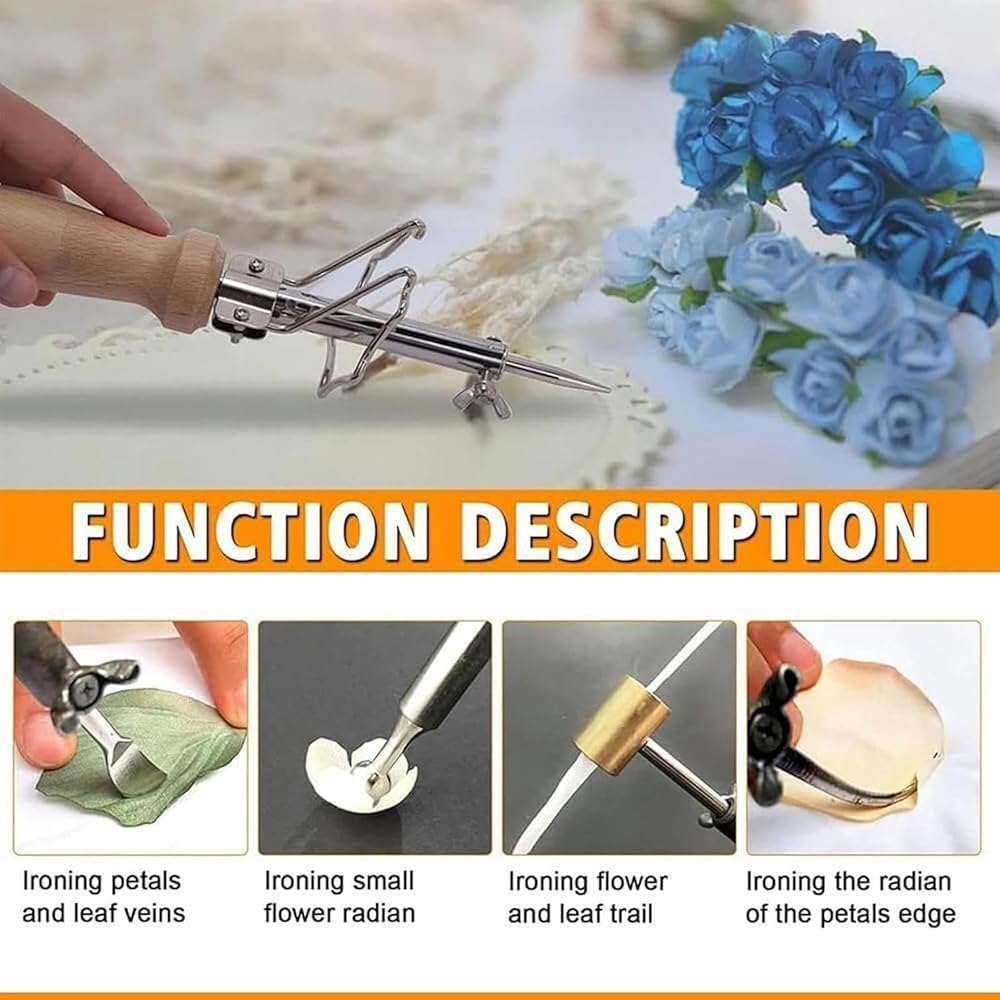 ★【27 WORK HEADS】:The fabric flower making tool is equipped with 17 ironing heads, which can be replaced and used to meet different work needs, improve work efficiency. this versatile tool allows you to make various flower designs including brooches, decorations, hairpins, and artificial flowers.