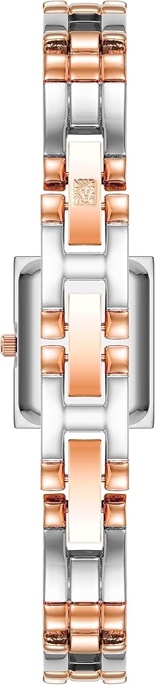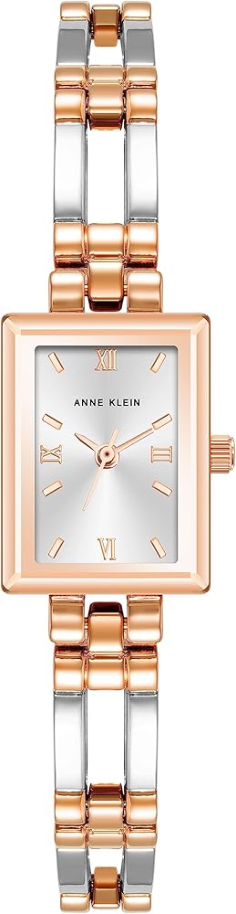 - Gold- and silver-tone dress watch with rectangular sunray dial and Roman numeral and stick markers
